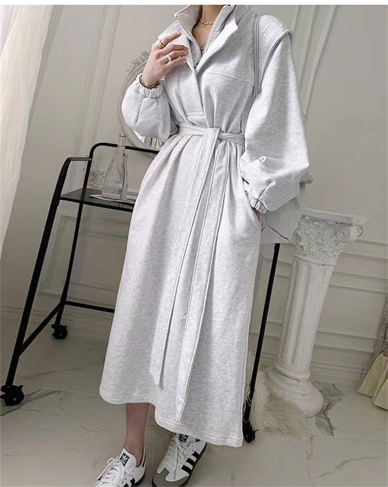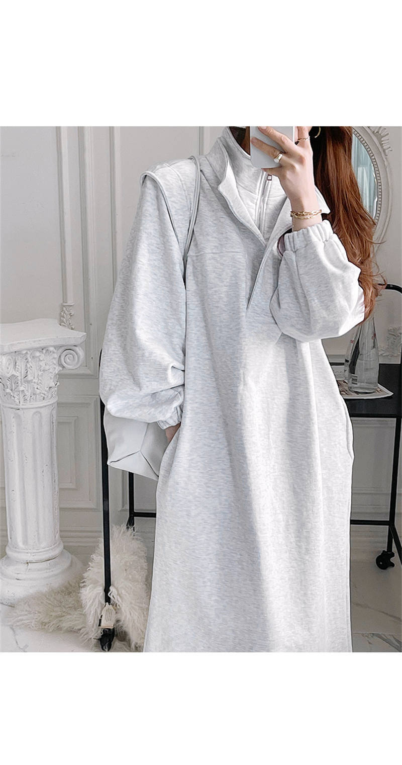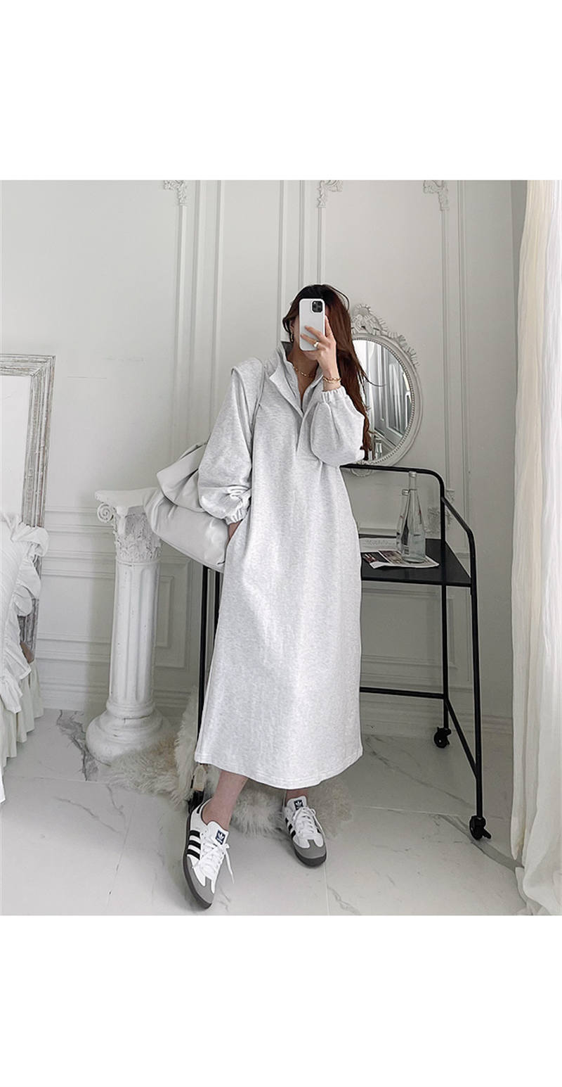 2024年秋冬の新作として登場した、上品な印象を与えるスウェット素材のロングワンピースです。