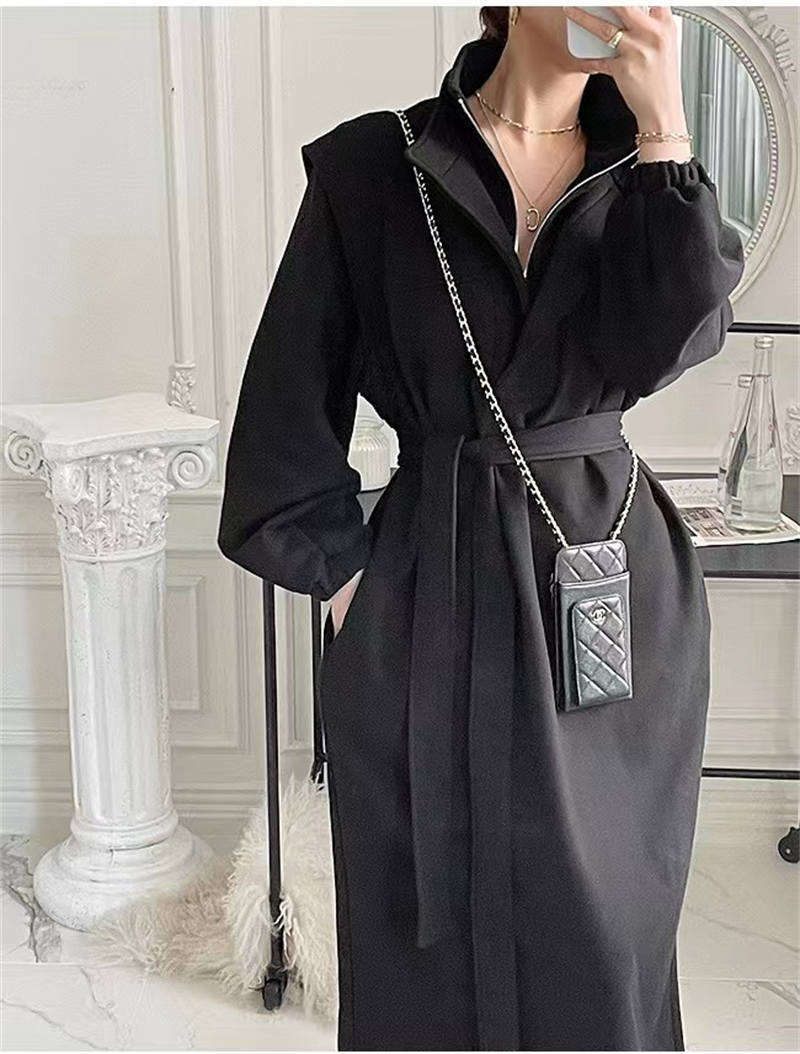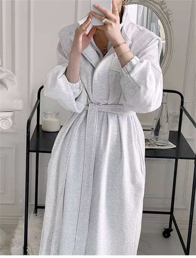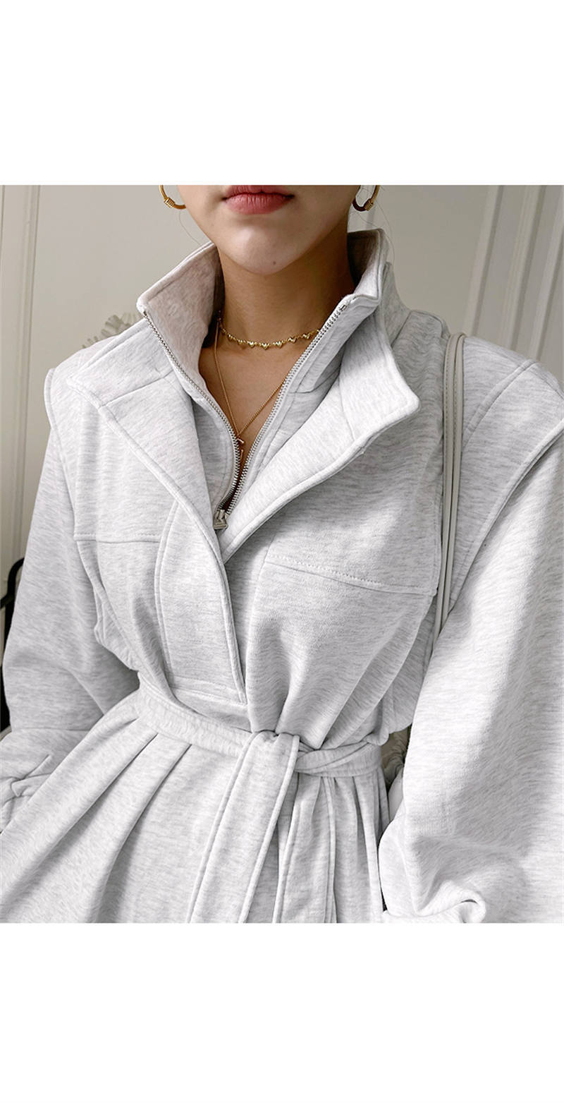 フード付きのゆったりとしたシルエットにウエストベルトが付いて、リラックス感と女性らしさを両立。