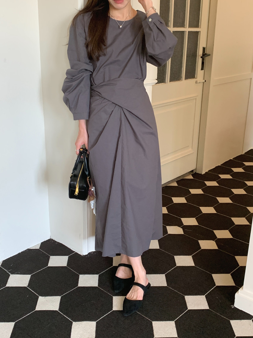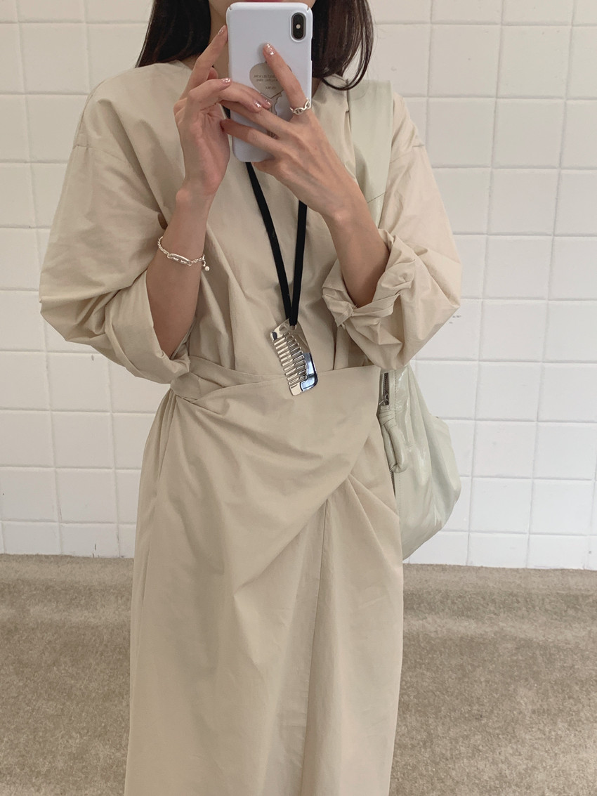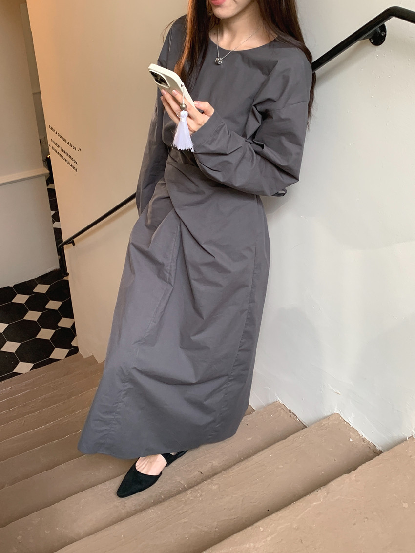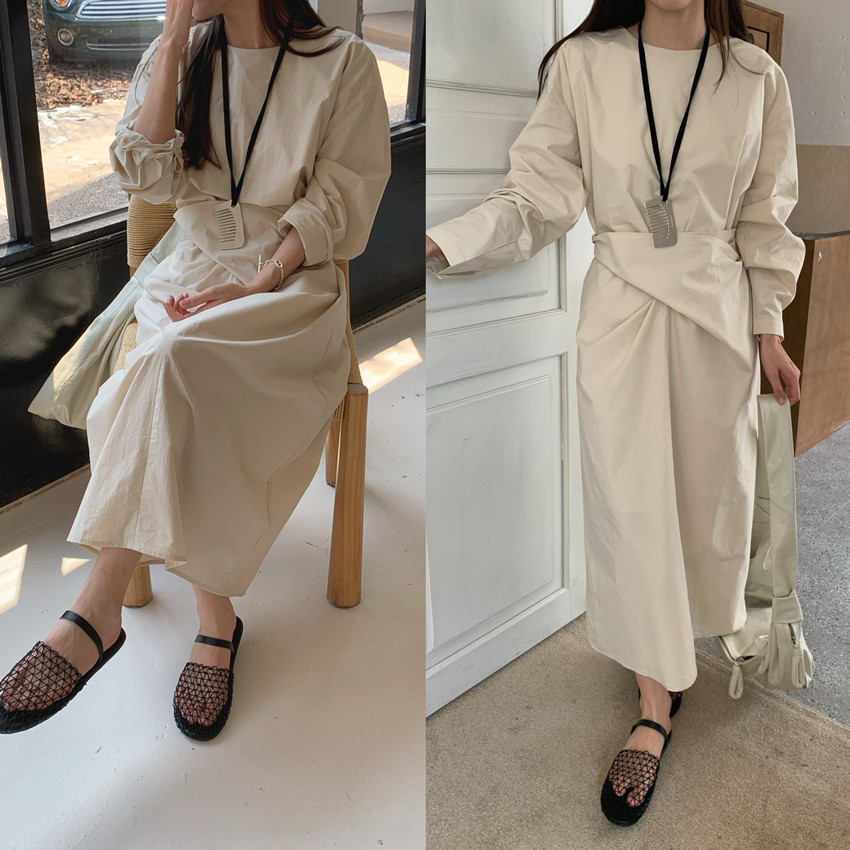 快適な着心地を提供するコットンとポリエステル混合素材を使用したフリーサイズのロングワンピースです。