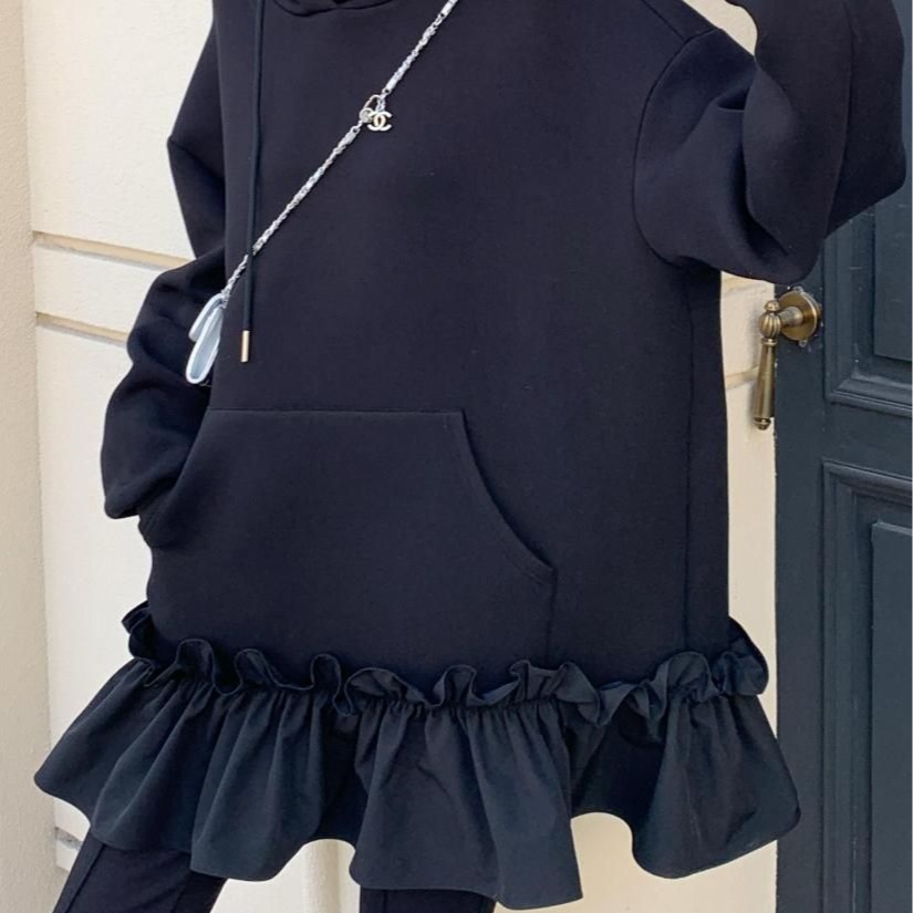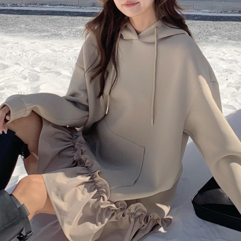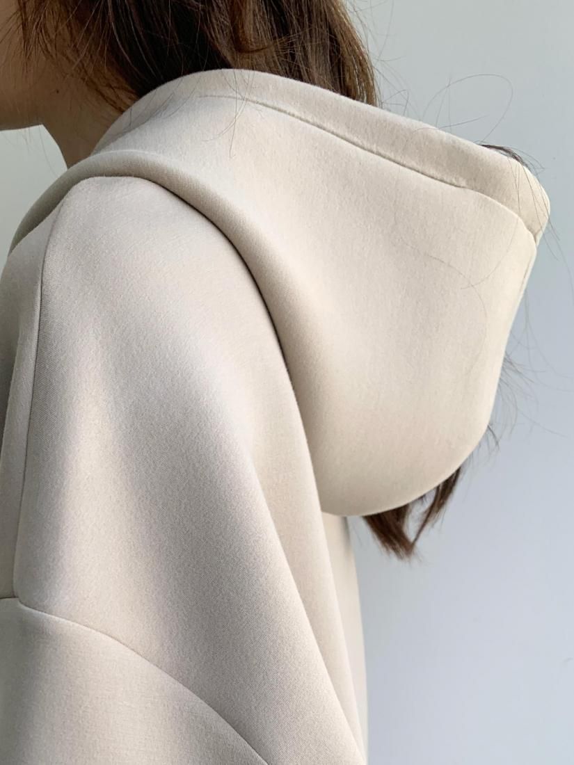 カジュアルで上品なフード付きスウェットワンピースが登場。