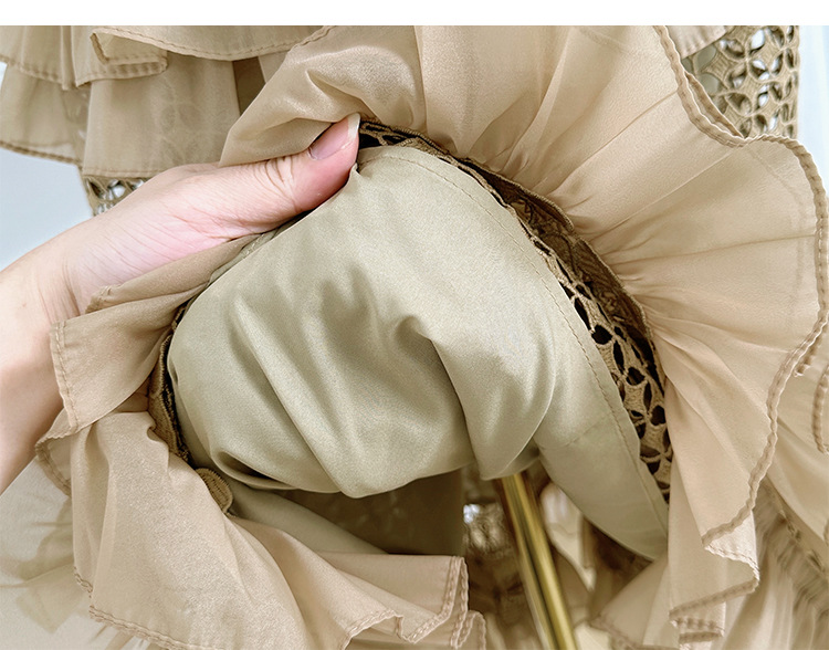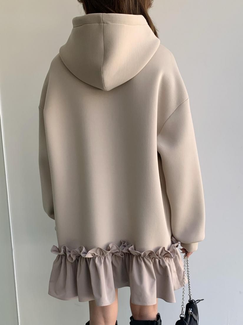 ロングワンピースとしても着回し抜群で、裾のフリルデザインが女性らしさをプラス。