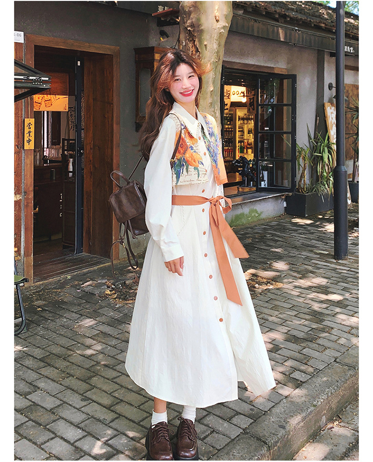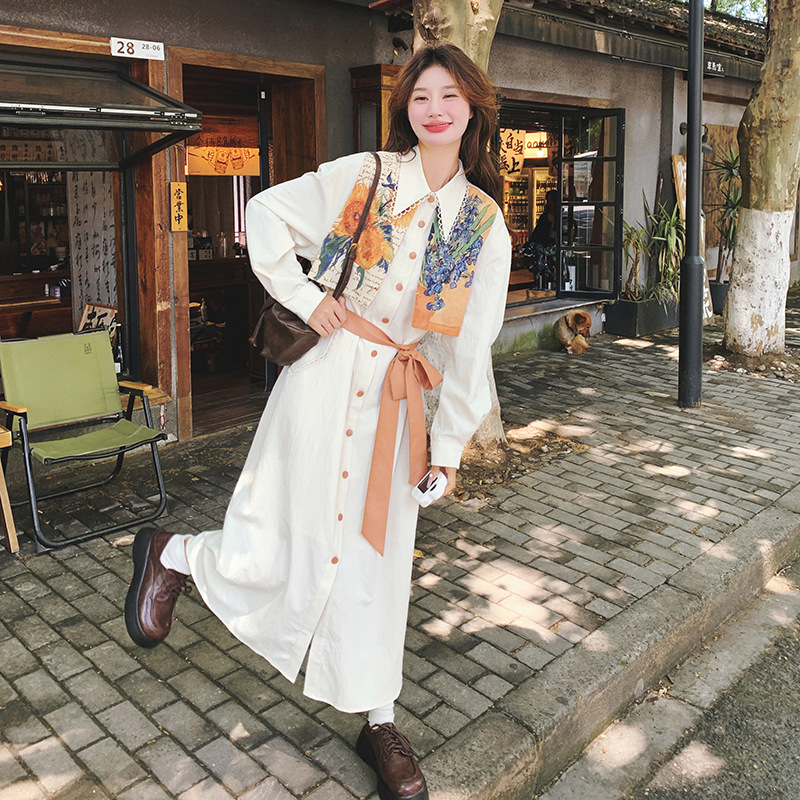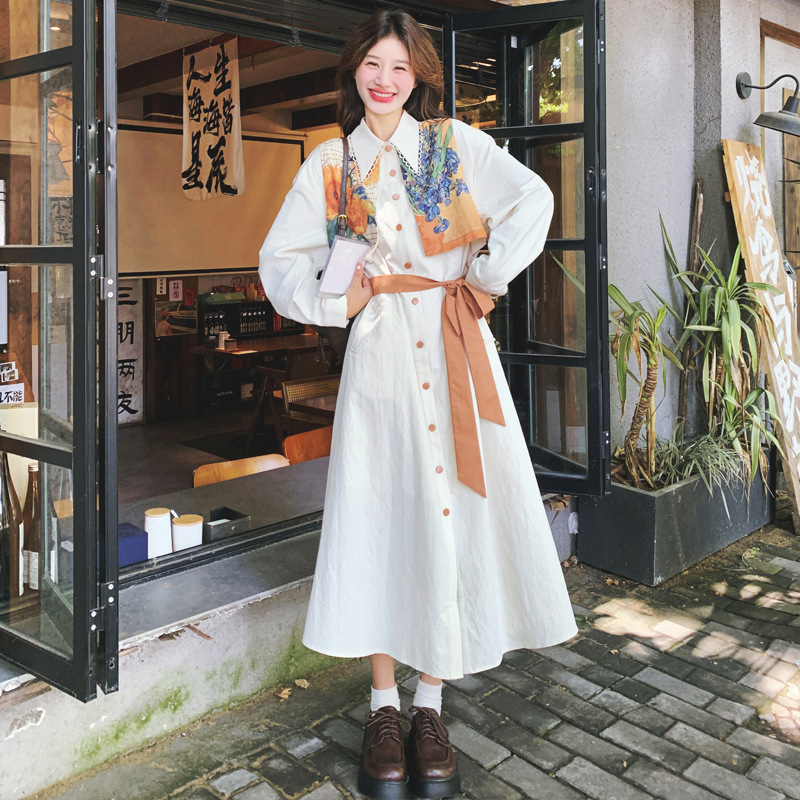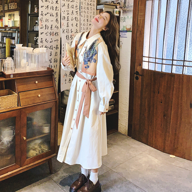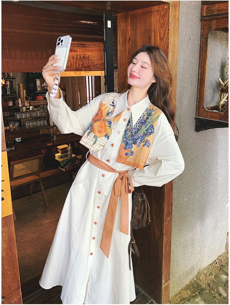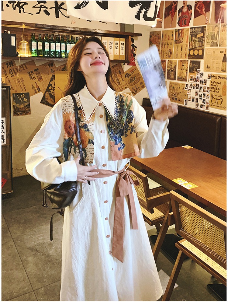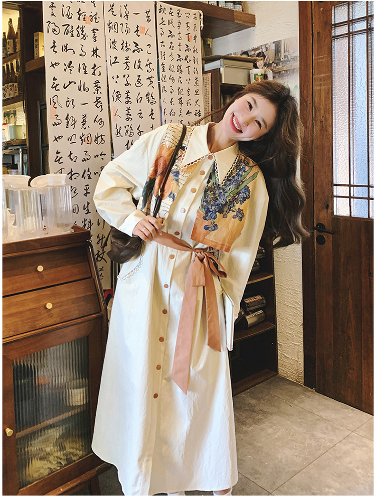 白ベースに美しい花柄がアクセントになったシャツワンピースです。