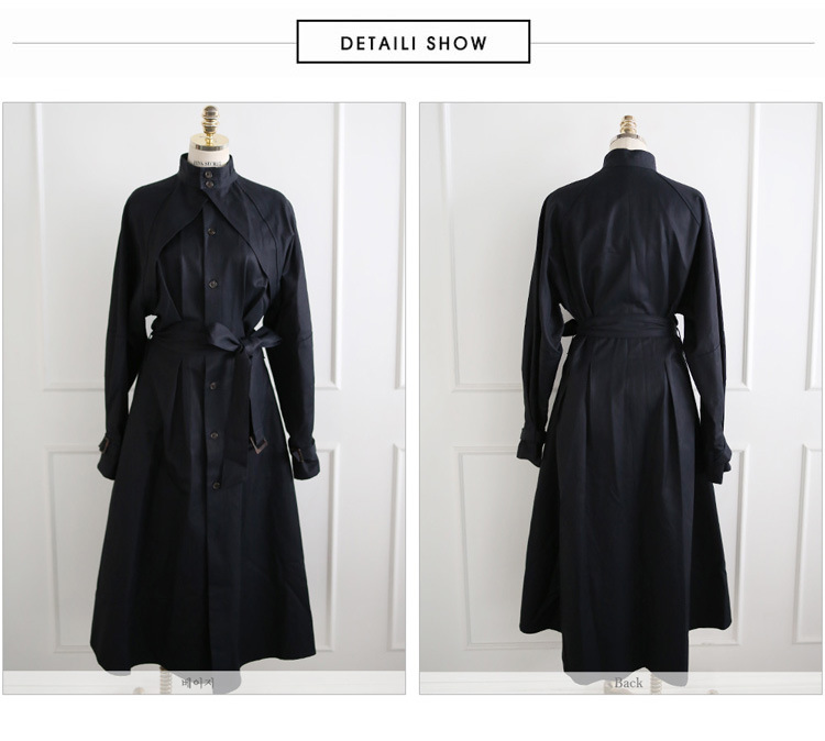 エレガントなトレンチコートデザインのロングワンピース。