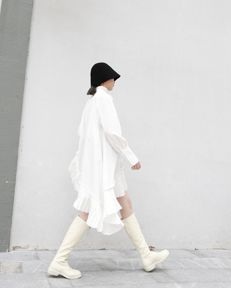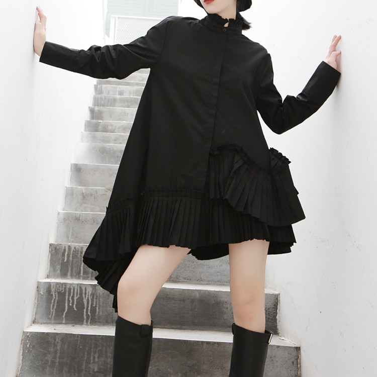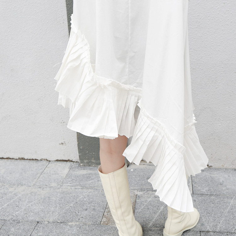 美しいプリーツ切替とフリル装飾で上品な仕上がりに。