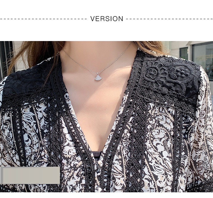 深めのブイネックと繊細なレースデザインが上品な印象を演出します。