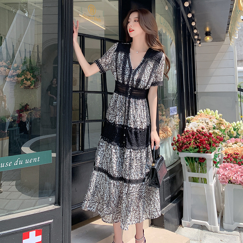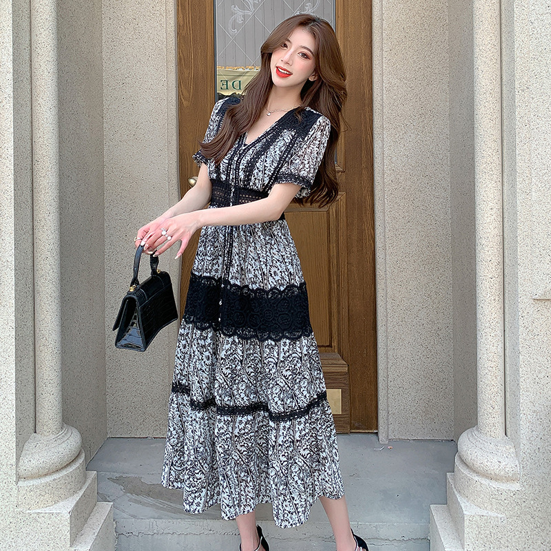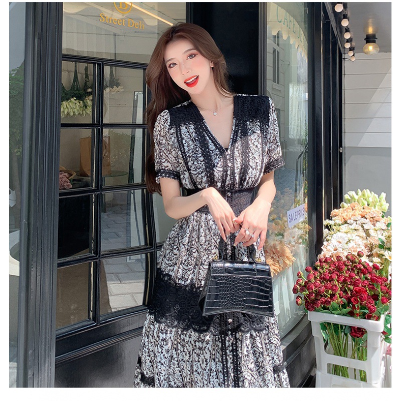 エレガントな花柄レースが美しい韓国風シャツワンピースです。