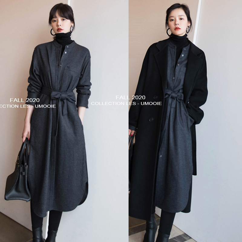 大人の女性らしさを演出するシャツタイプのロングワンピース。