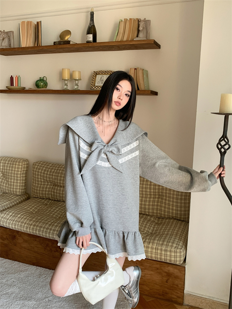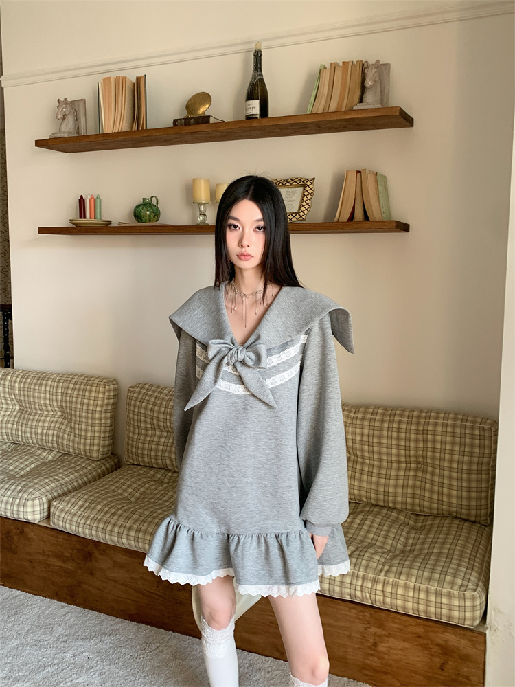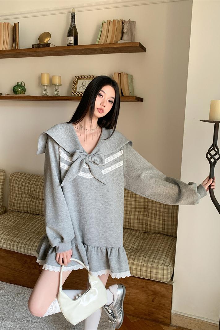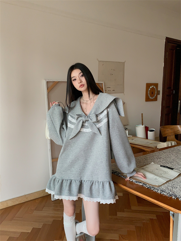 上品な気質を演出するレトロデザインのスウェットワンピース。
