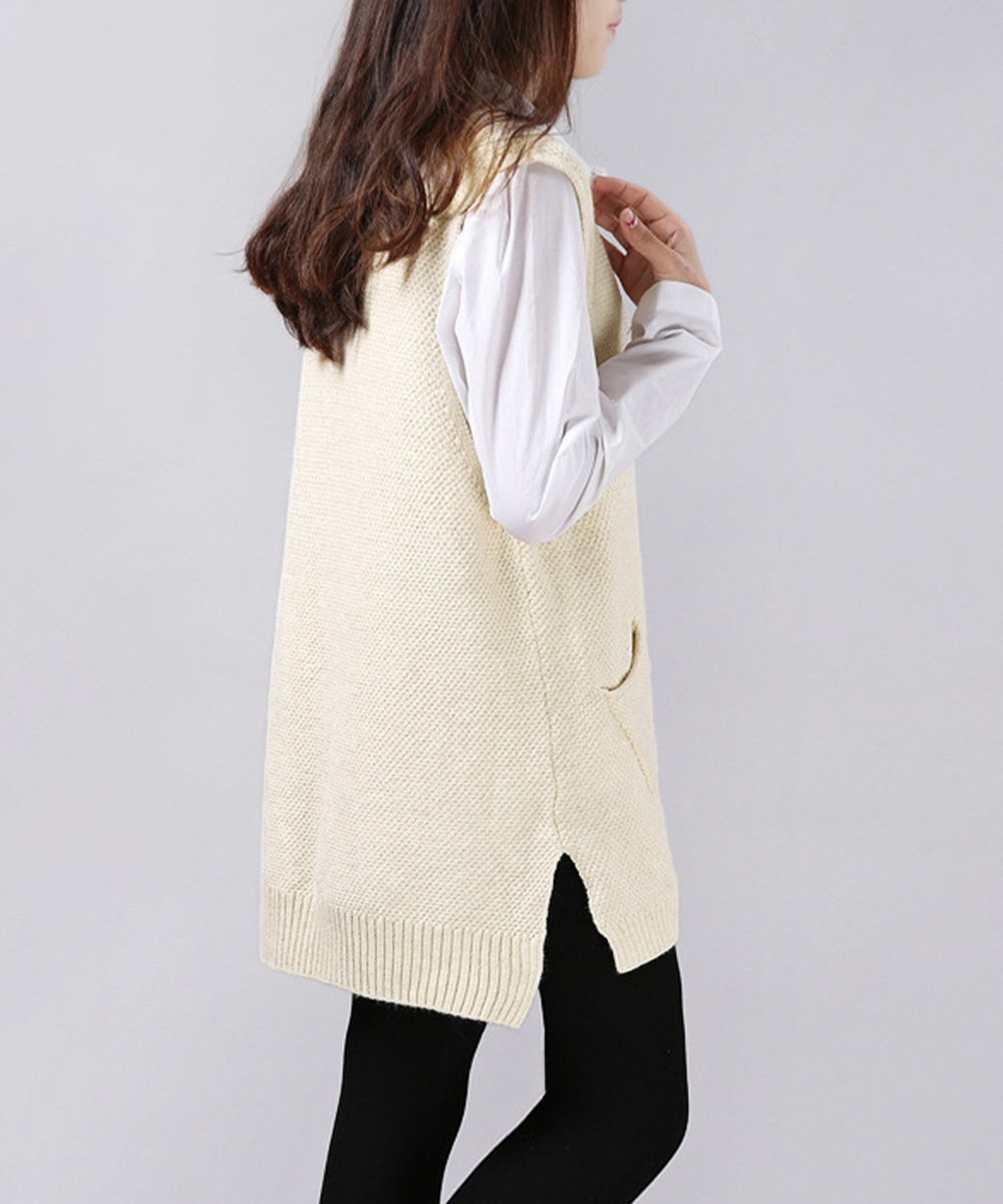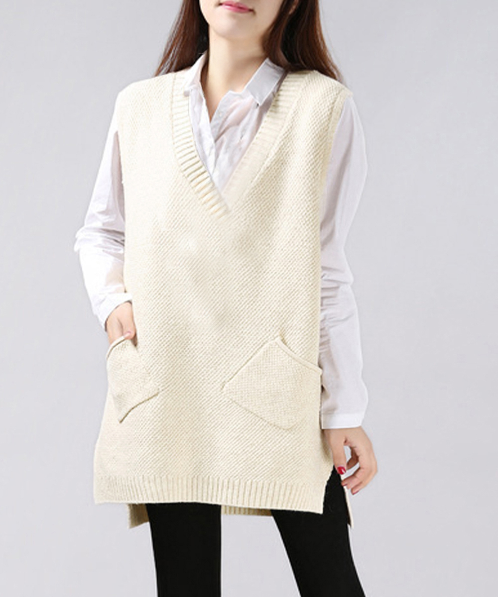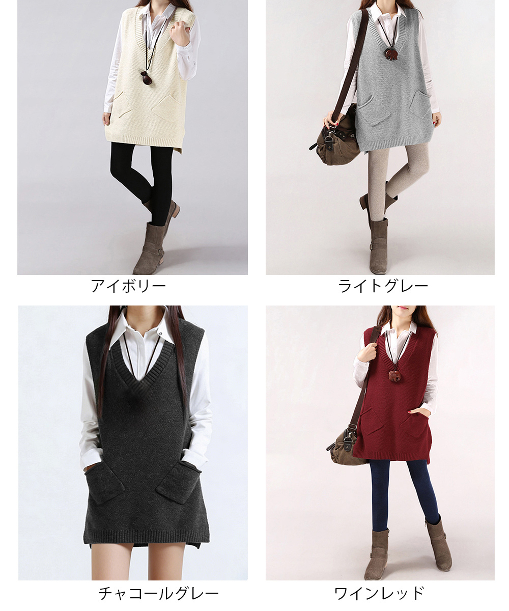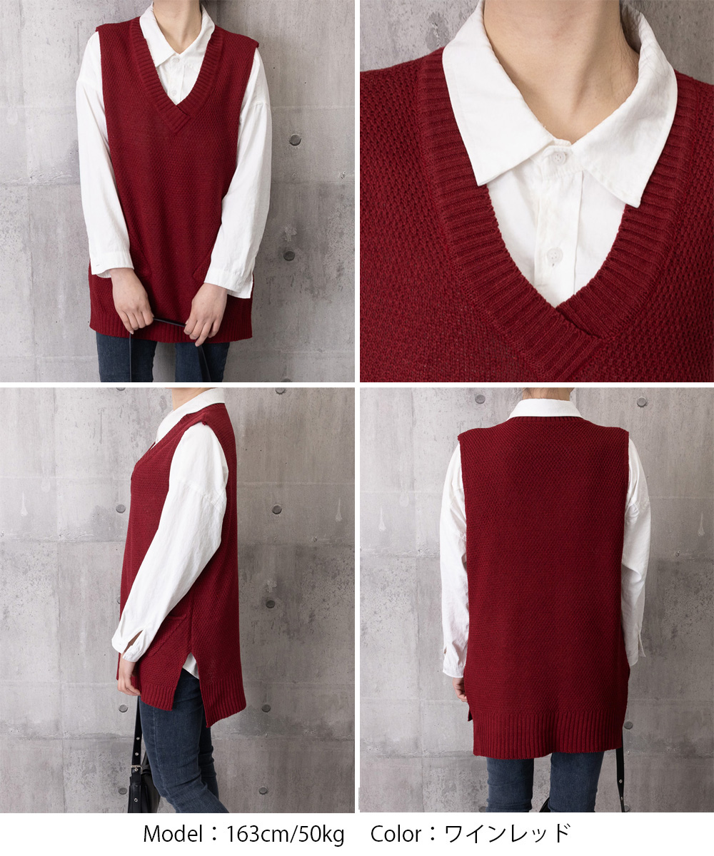 レディース サイドスリット ニットチョッキ ポケット付き ロングニットベスト 重ね着 無地ベスト カジュアル ニットジレ 着やせニット韓国風 レイヤード ニット 大人おしゃれ春秋服 トレンド感溢れるロング丈のニットベスト。 サイドに施されたスリットもオシャレポイント。 Vネックラインがシルエットをスッキリ魅せてくれる。 ブラウスやカットソーとのレイヤードスタイルや、ワンピースと合わせるのも今年らしくてオススメ。 素材:ポリエステル85%+アクリル15% カラー:アイボリー/ライトグレー/チャコールグレー/ワインレッド サイズ:ワンサイズ 着丈:前丈約69cm/後ろ丈約74cm 身幅:約52cm 胸囲:約104-120cm 裏地:なし 伸縮性:あり 透け感:アイボリーのみややあり ※ニット素材の為、伸縮具合によっては編みに隙間を感じる場合があります。