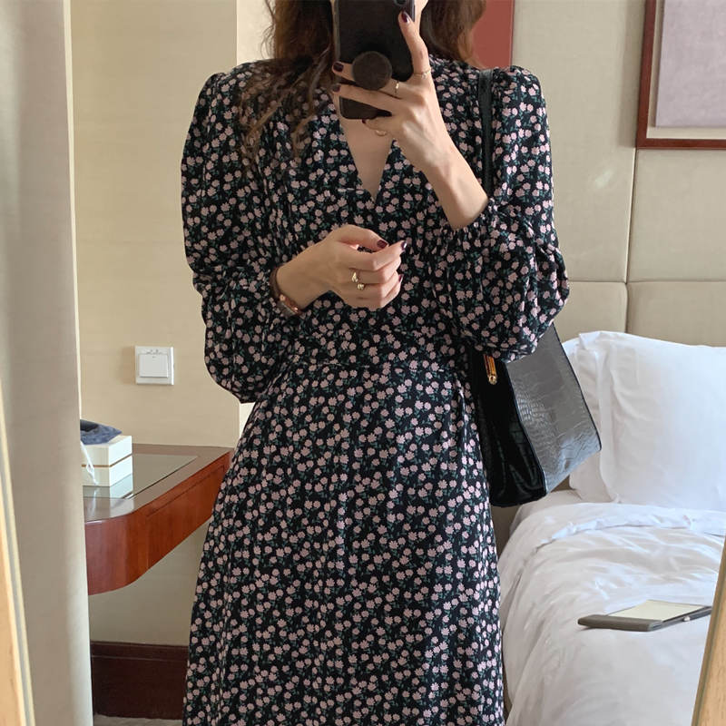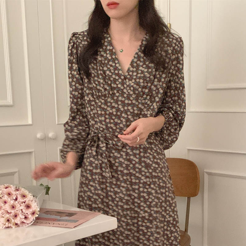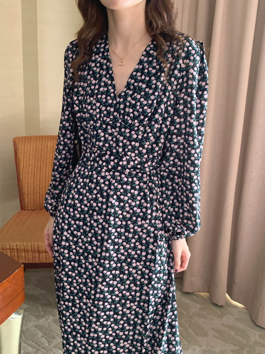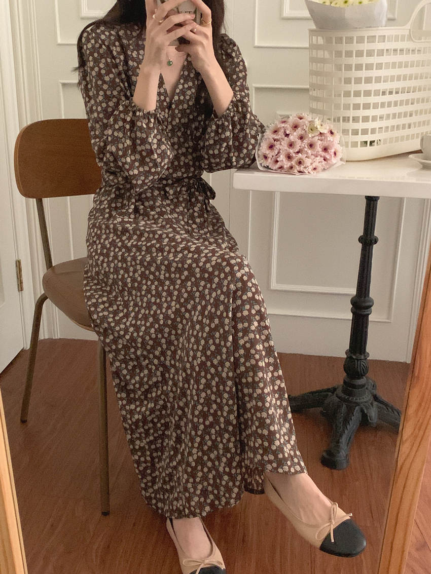 上品な花柄が印象的なシャツタイプのロングワンピース。