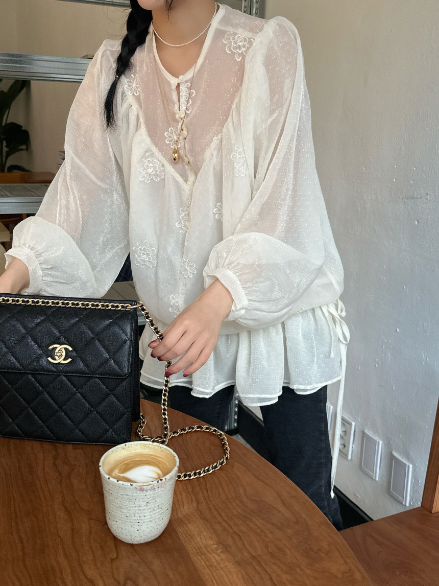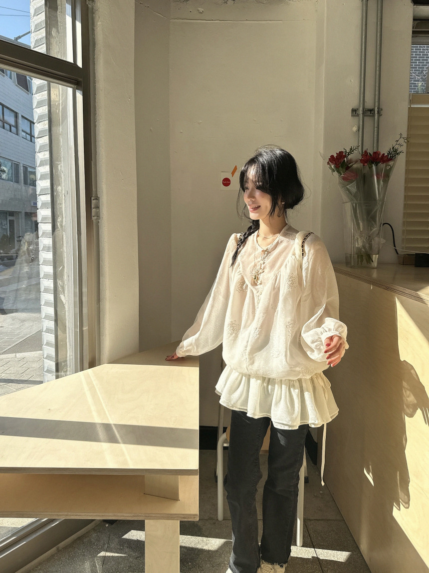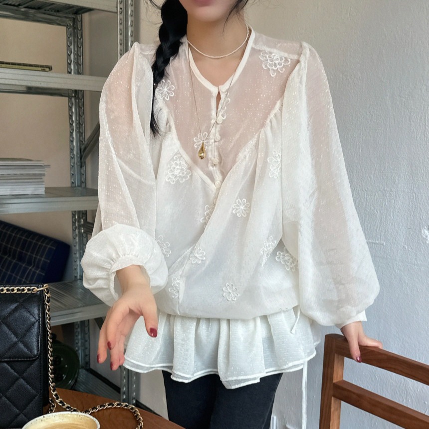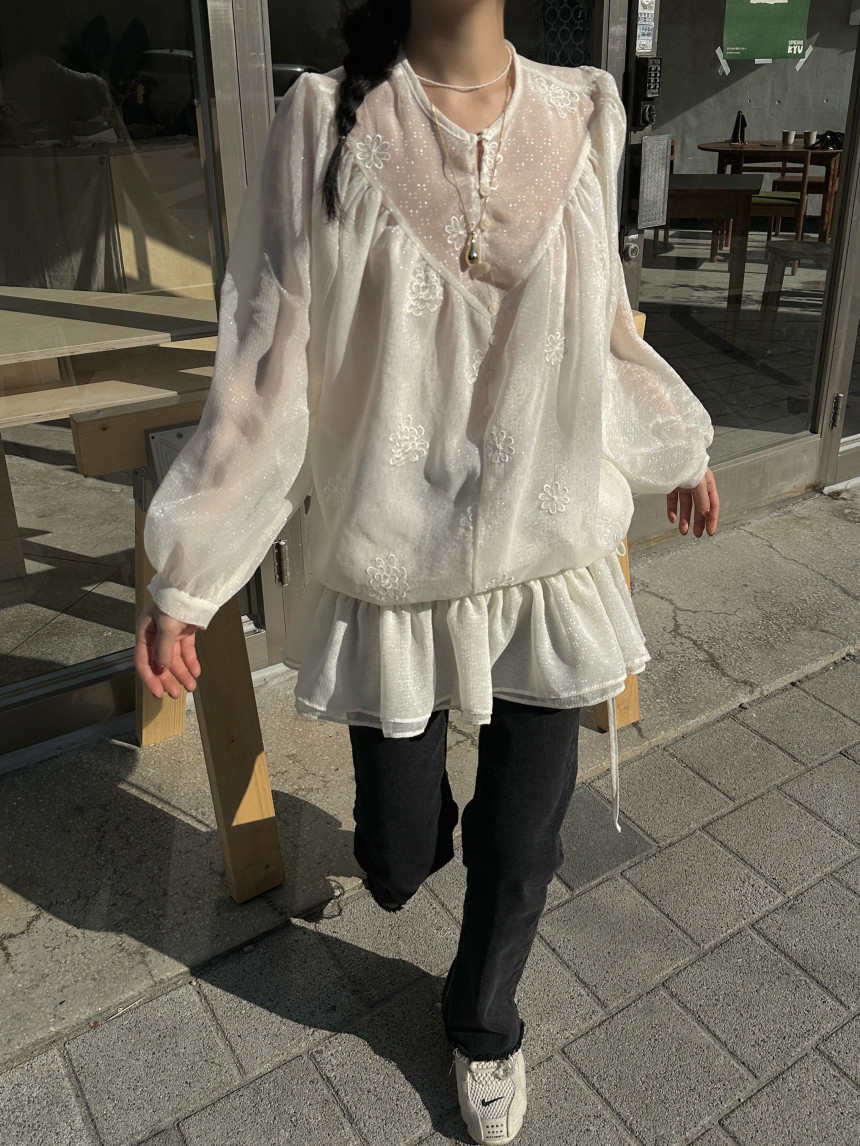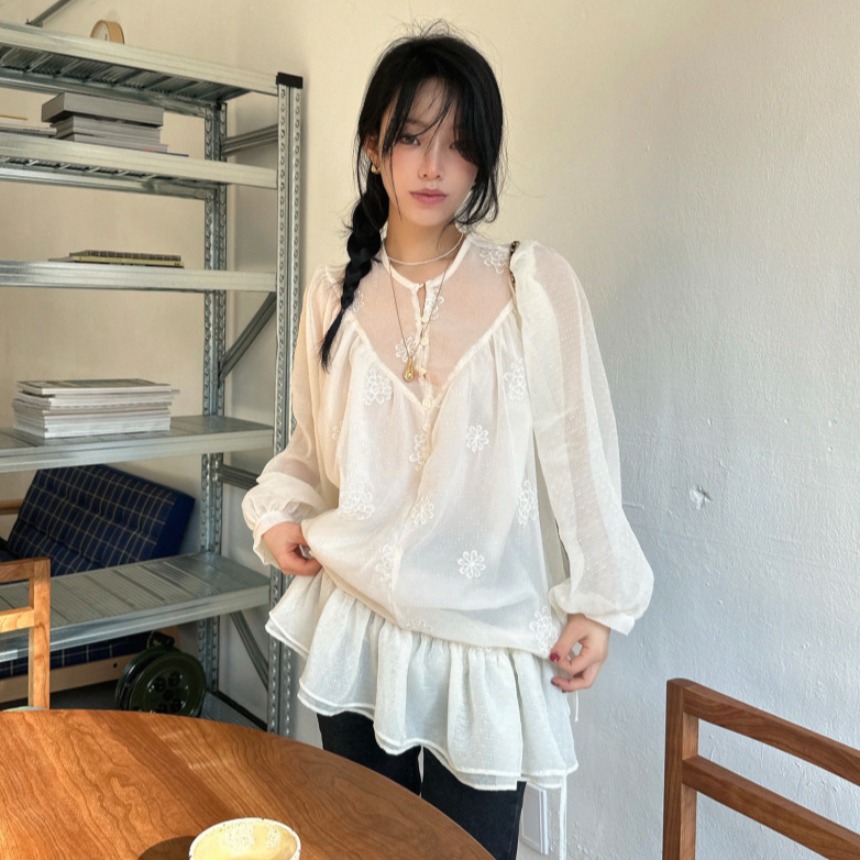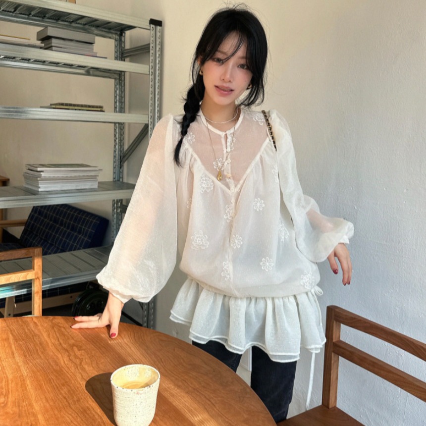 今季注目のフリルデザインが魅力的なロングワンピース。 透け感のある素材に繊細な刺繍が施され、上品で洗練された印象を演出します。 袖口と裾のフリルが女性らしさを引き立て、どんなシーンでも気質の良さが光る一着です。