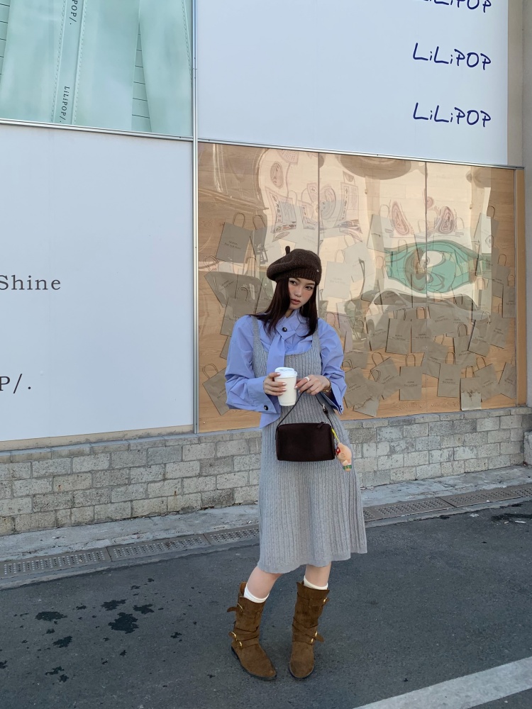 上品な気質を演出するニットキャミのロングワンピース。 白シャツとの重ね着でトレンド感抜群のコーディネートが完成します。 ピンクとグレーの2色展開で、どちらも女性らしい魅力を引き出す一着。 秋冬シーズンのマストバイアイテムです。