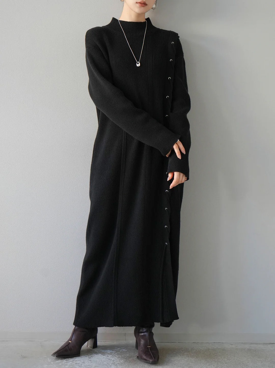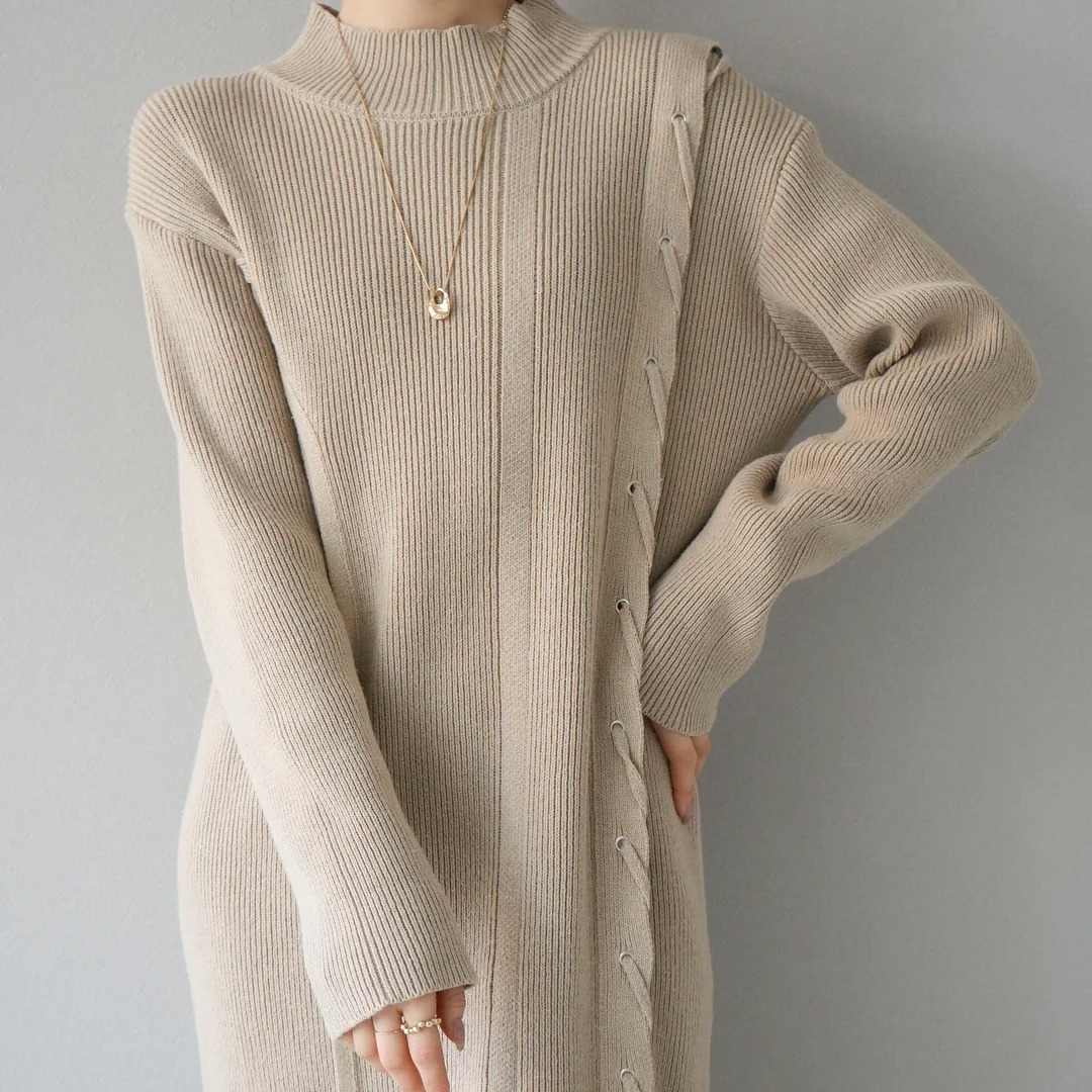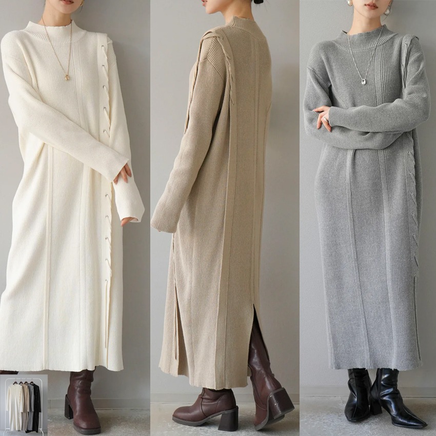 上品な韓国風デザインのリブニットロングワンピースです。 サイドボタンがアクセントになった大人可愛いシルエット。 柔らかなニット素材で着心地抜群、一枚でおしゃれに決まります。 秋冬シーズンにぴったりの温かみのあるロングワンピースです。