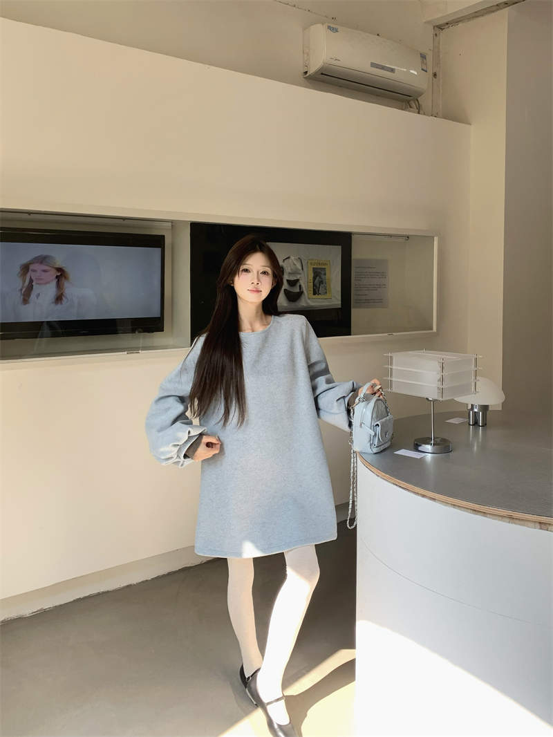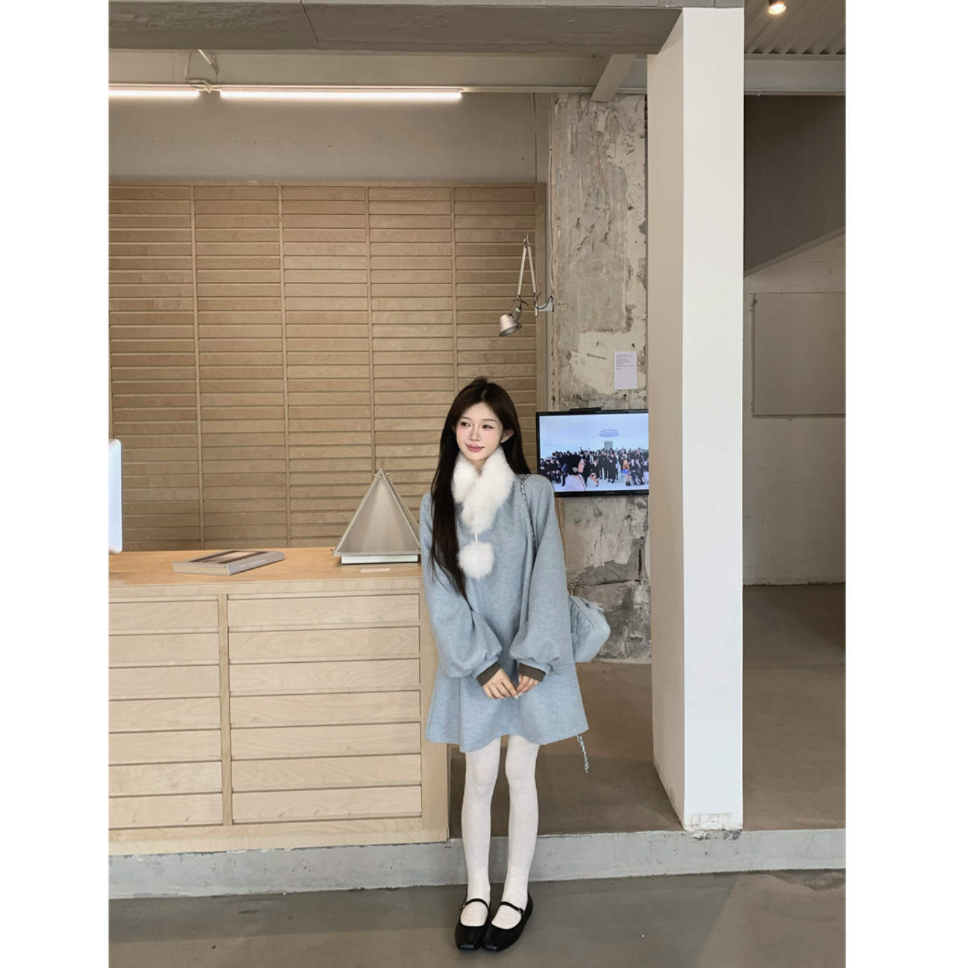 今季注目の韓国風デザインが魅力的なスウェット素材のロングワンピースです。