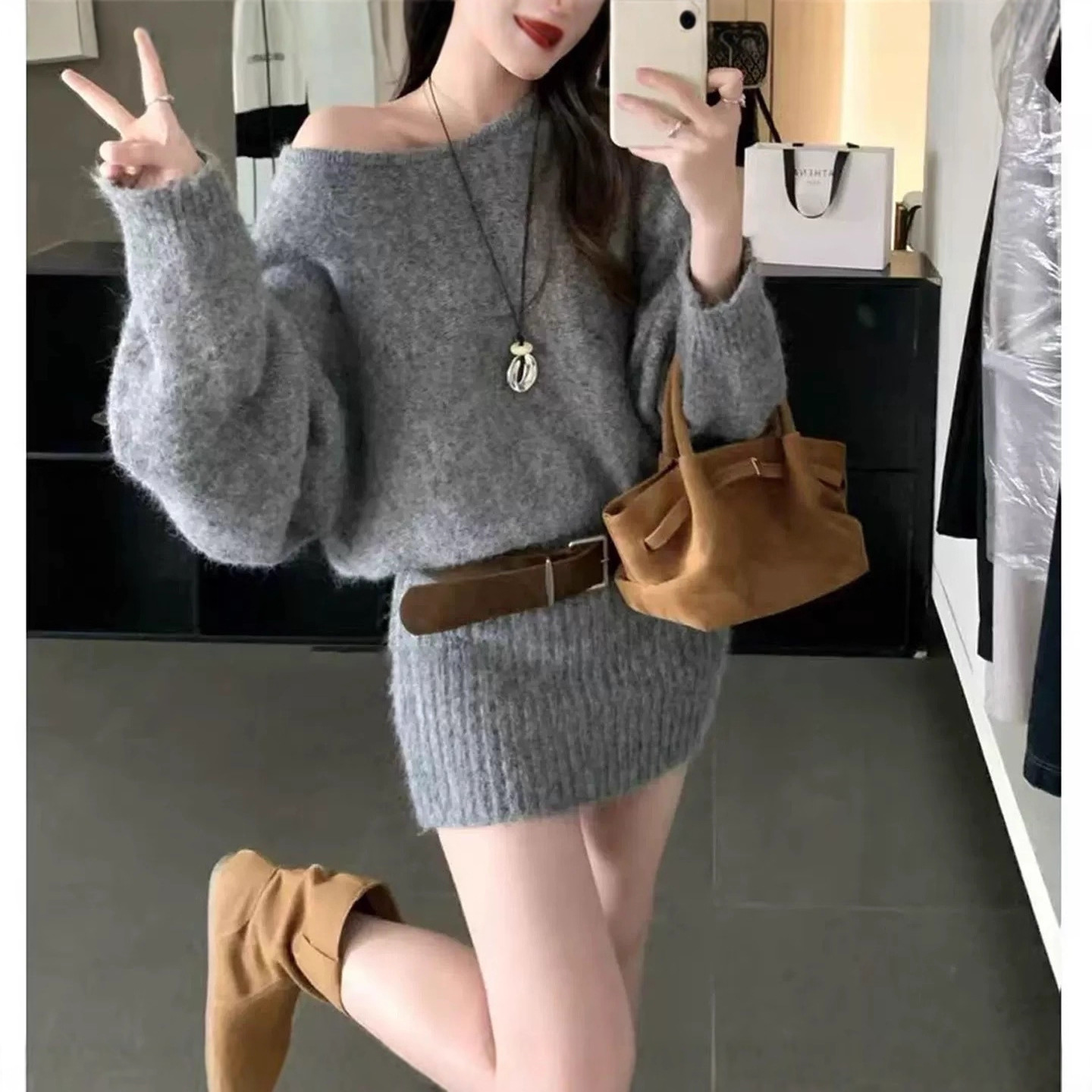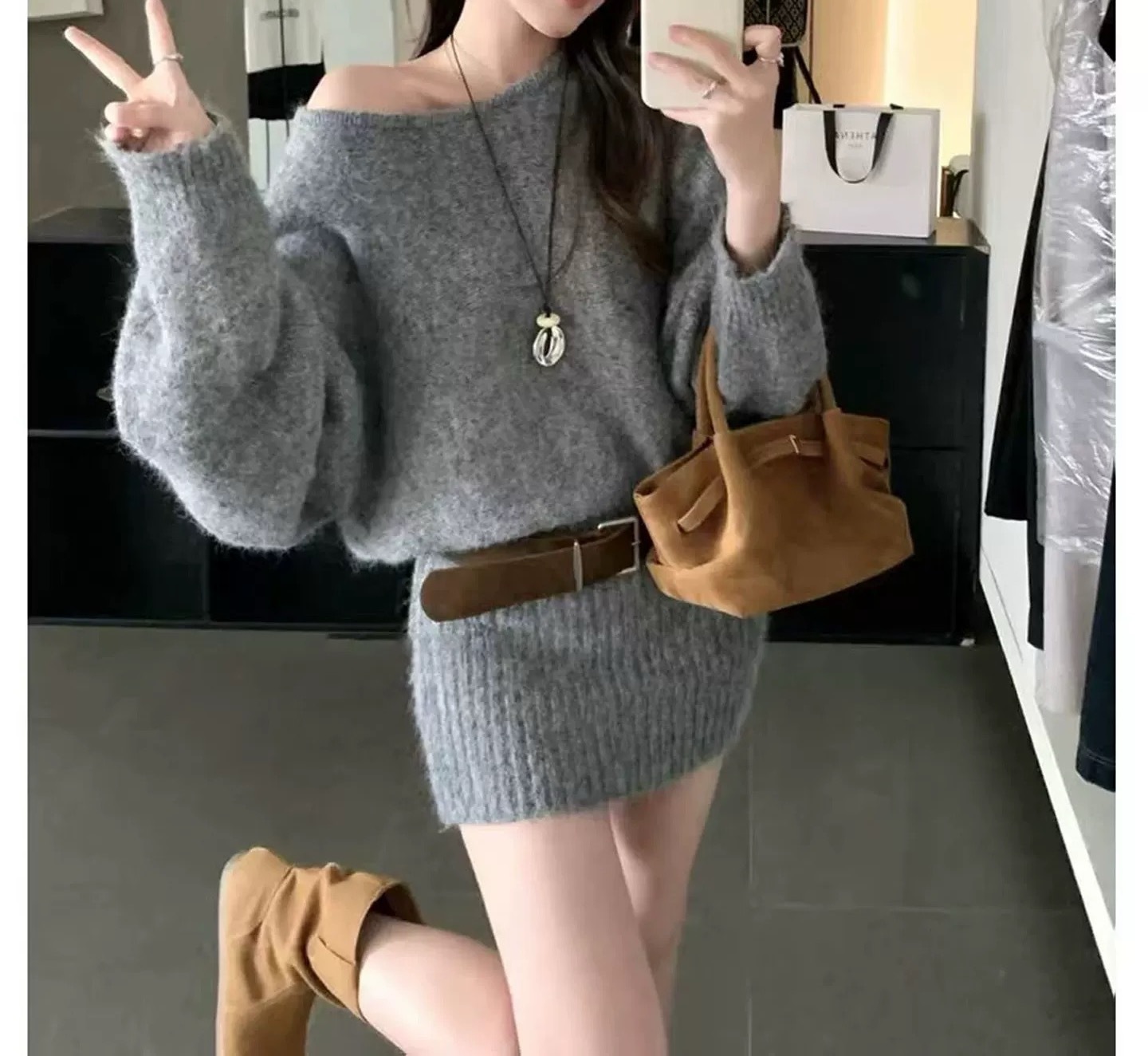 トレンドの韓国風デザインが魅力的なニットワンピースが登場。