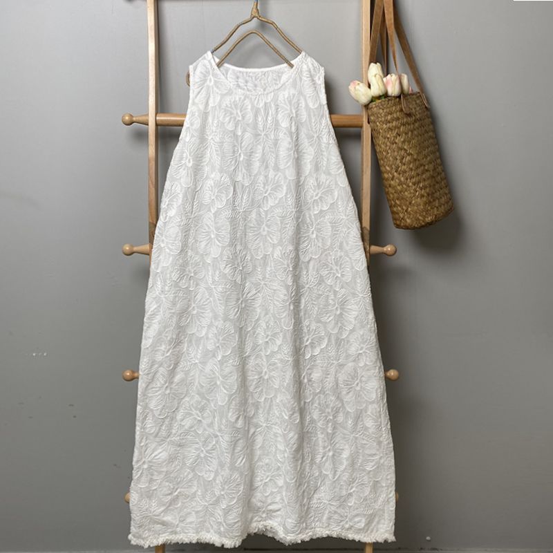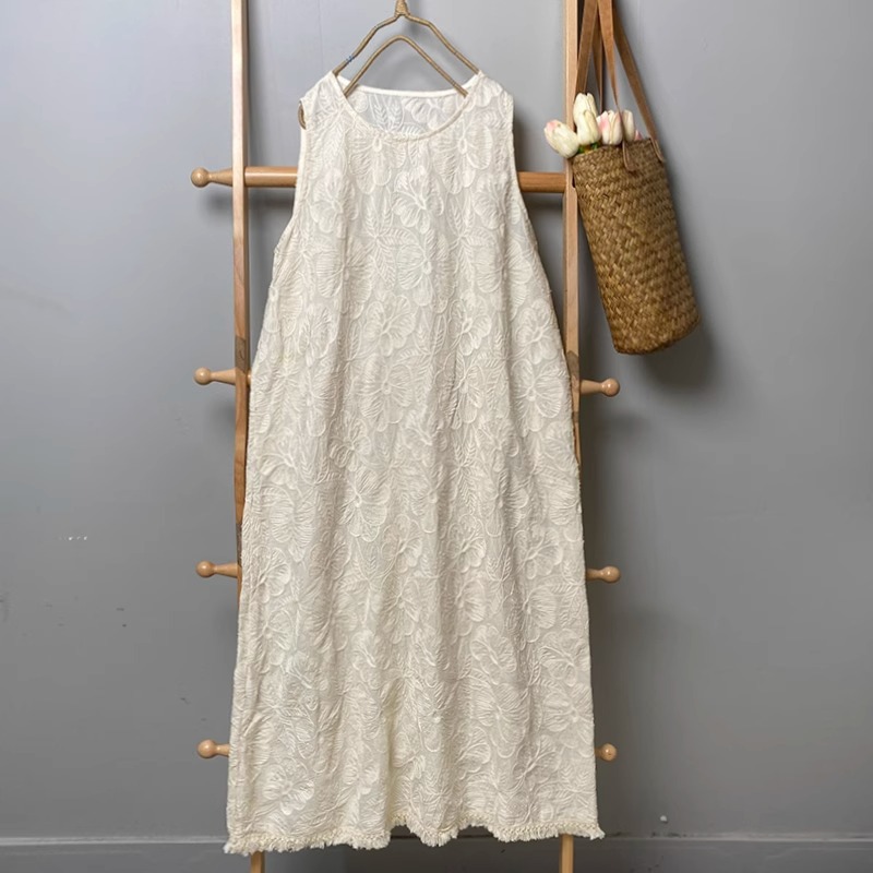 花柄の刺繍が施された上品なデザインで、ゆったりとしたシルエットが体型をカバーしてくれます。