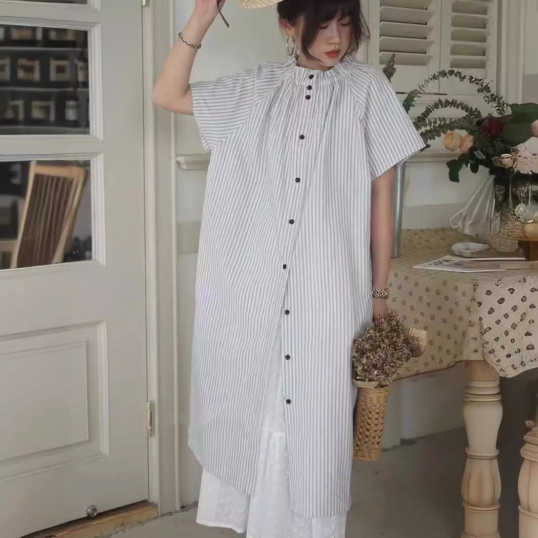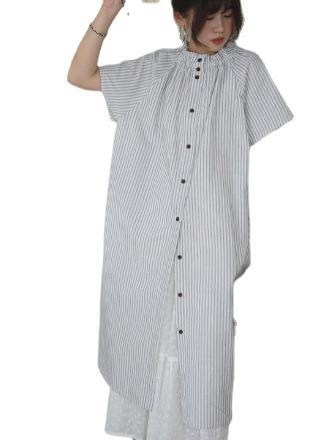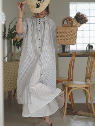 上品なストライプ柄が魅力的なシャツワンピースです。