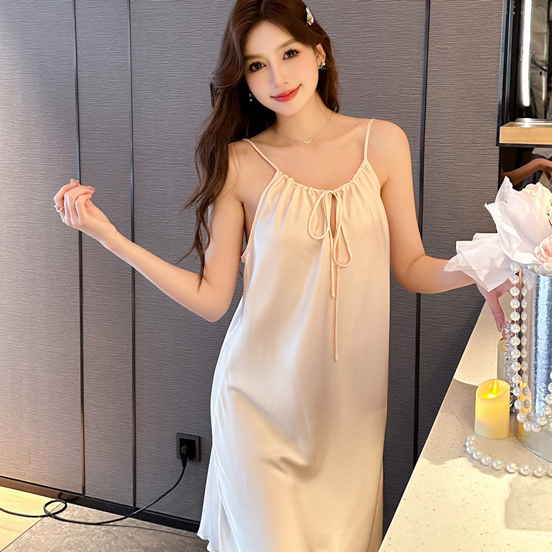 サテン素材で肌触りが良く、ネグリジェや部屋着として最適。