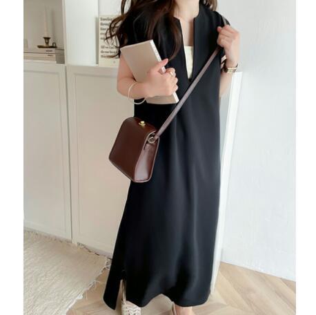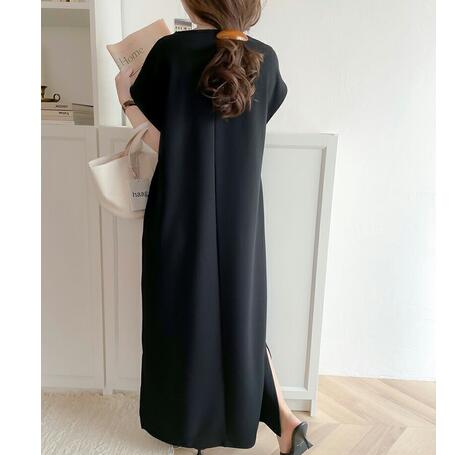 体型をきれいに見せる修身デザインのフレアロングワンピースです。