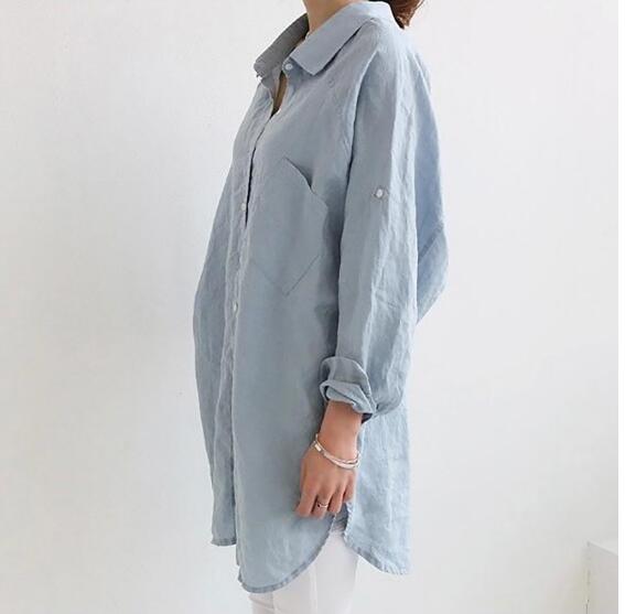 涼しげな麻素材を使用した夏にぴったりの長袖シャツワンピースです。