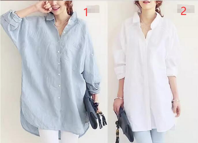 白と水色の2色展開で、ゆったりとしたシルエットが体型カバーにも効果的。