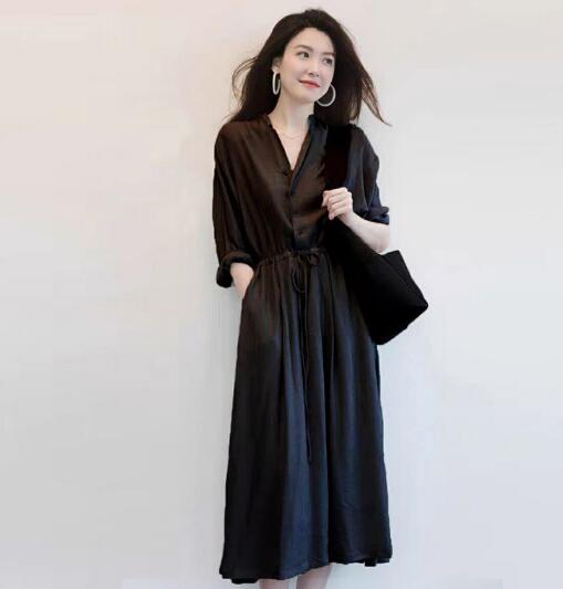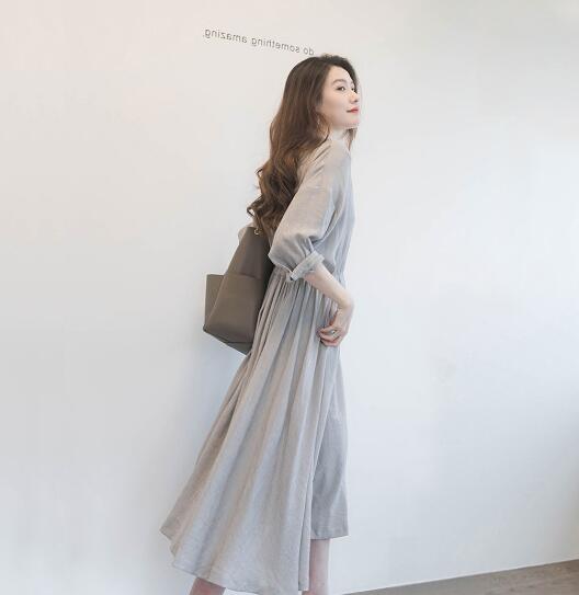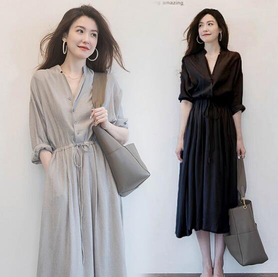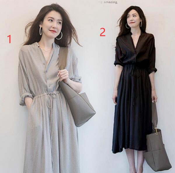 ウエストリボンでスタイルアップ効果抜群のロングワンピースです。