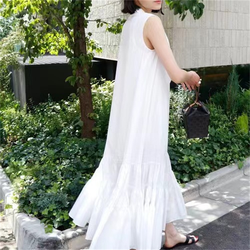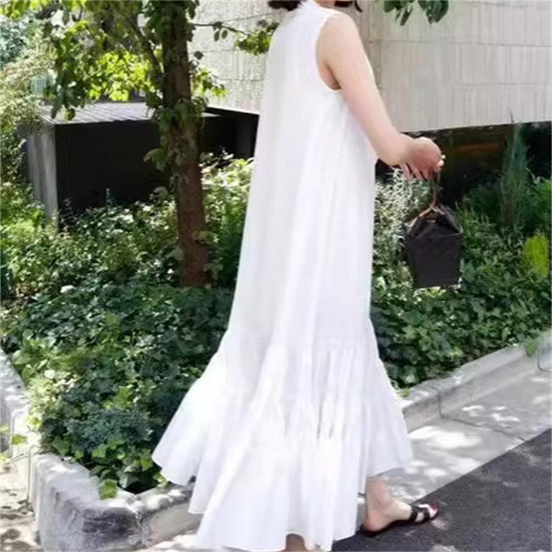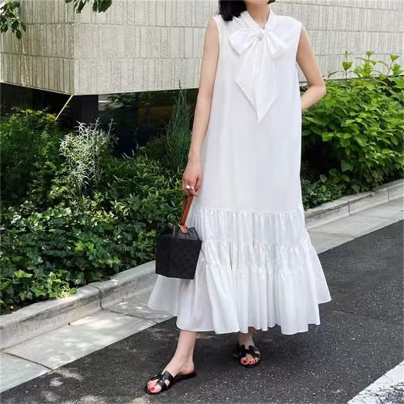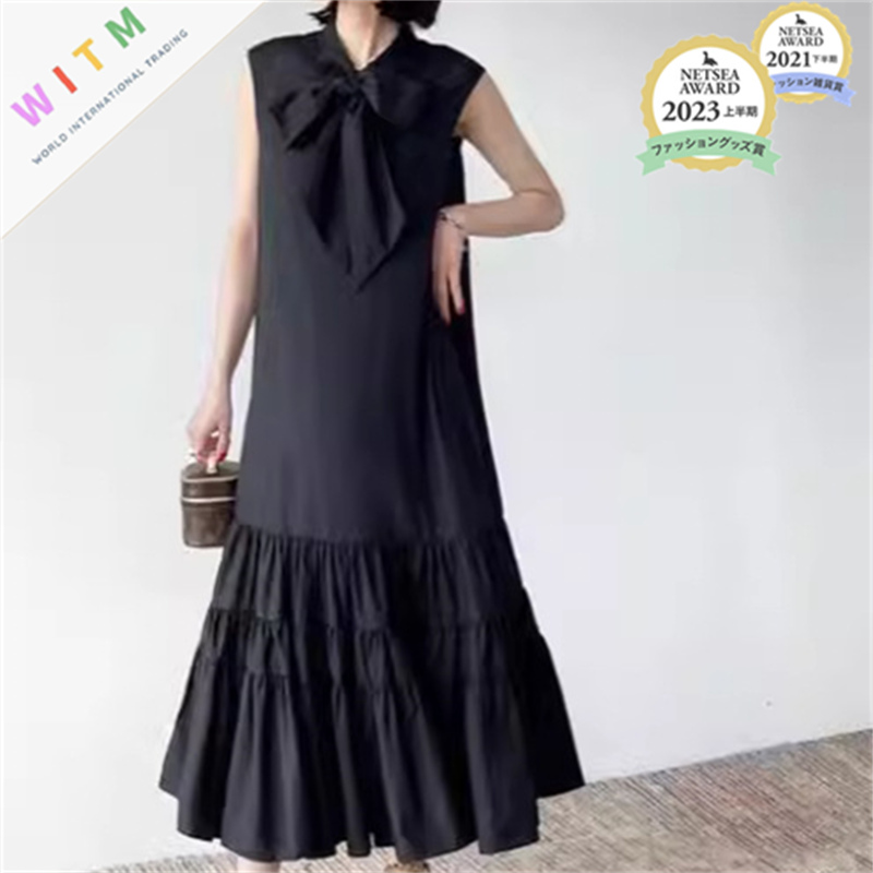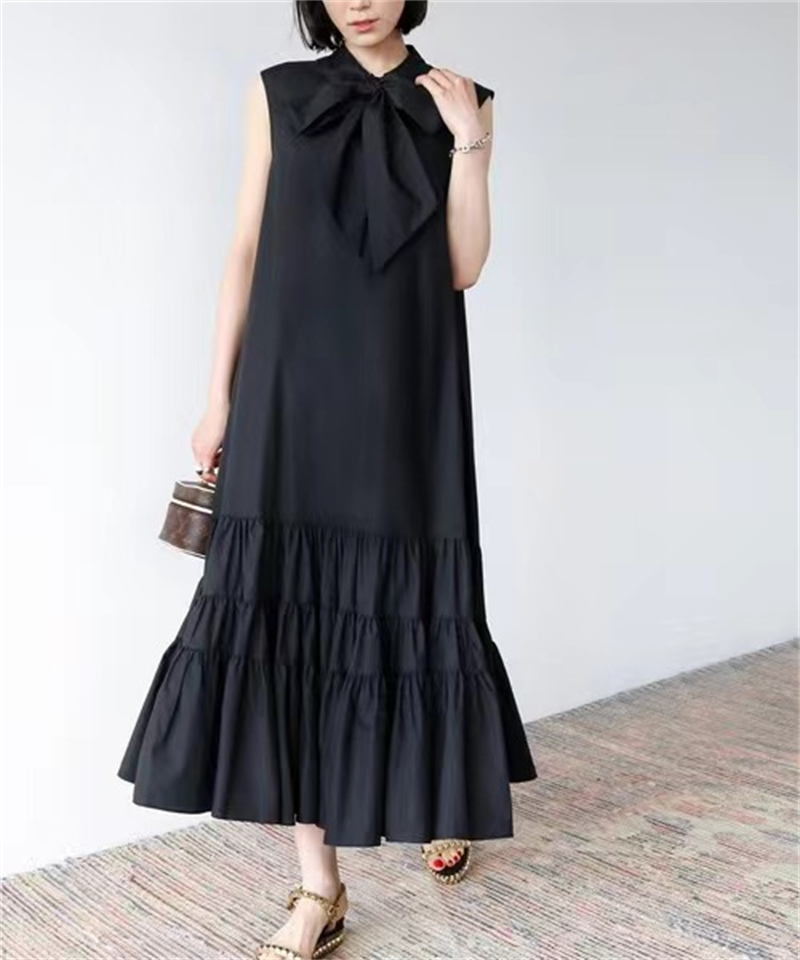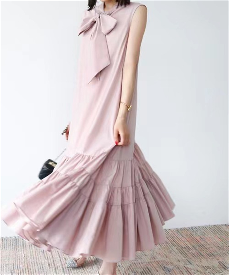 春夏にぴったりな素材のノースリーブロングワンピースは今季注目の一着。