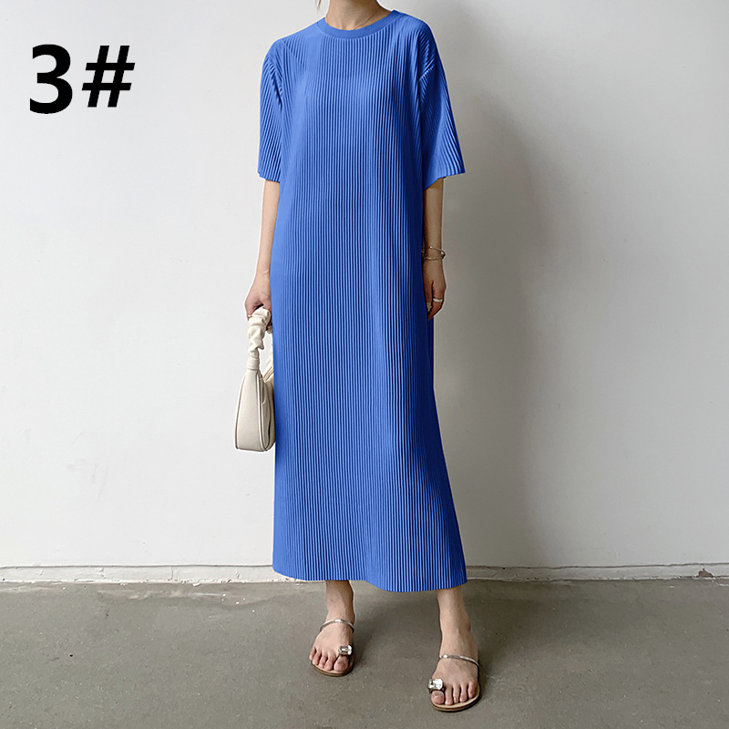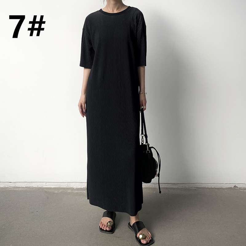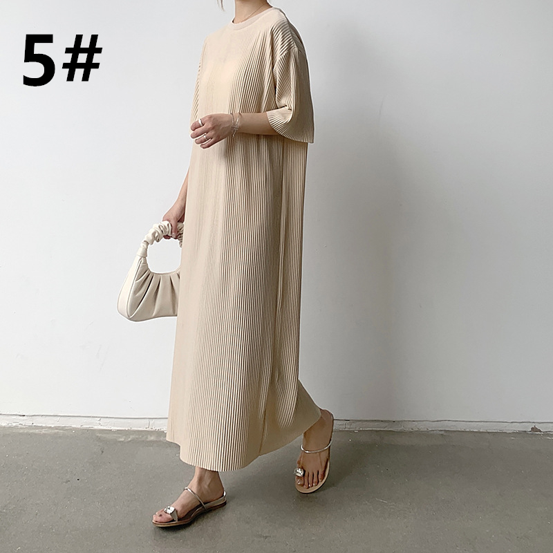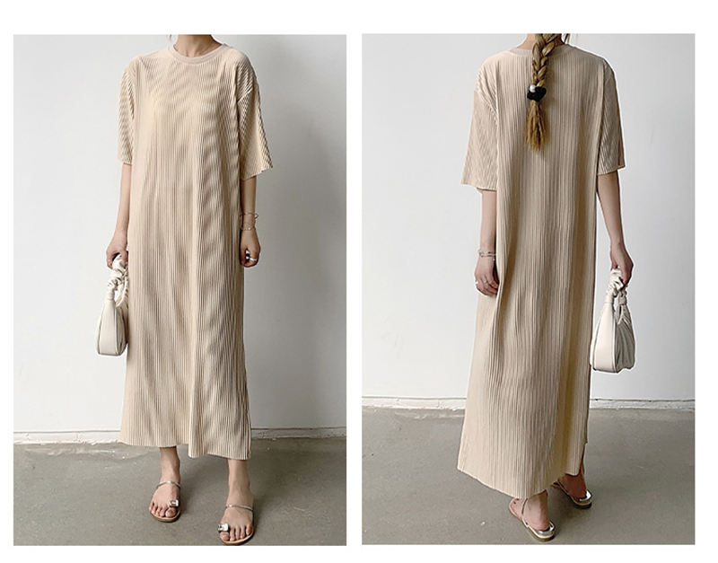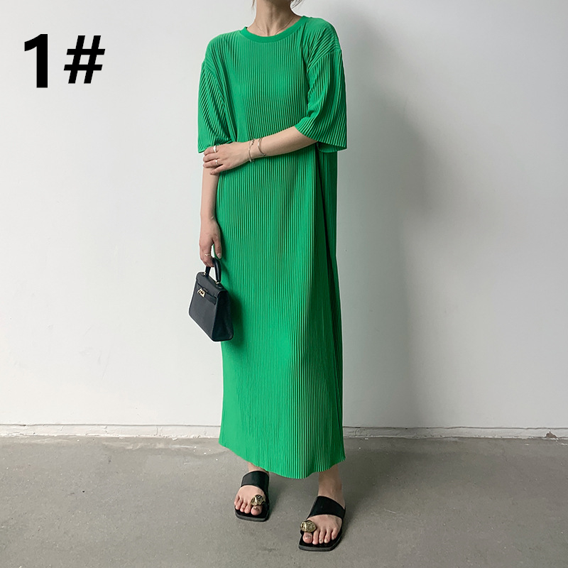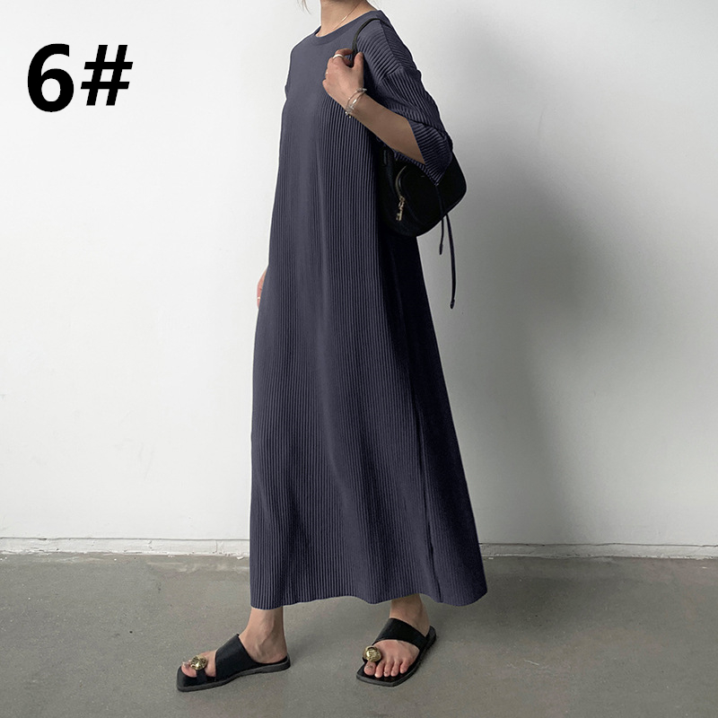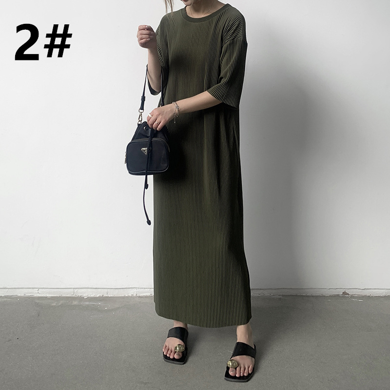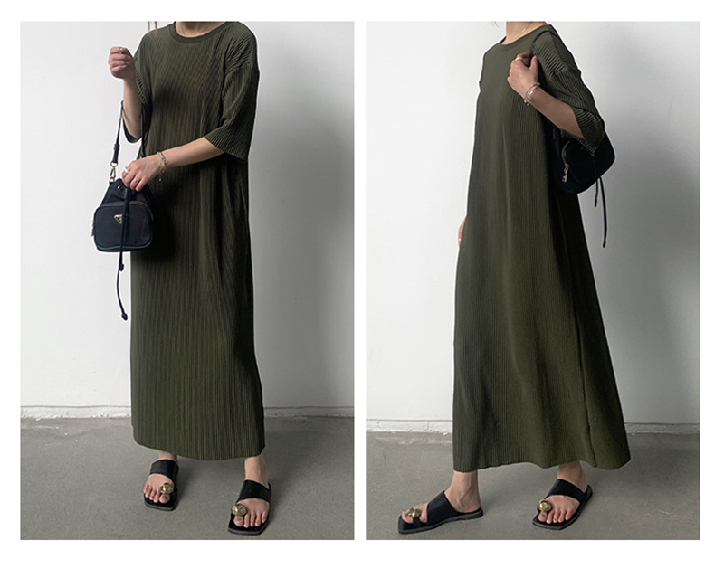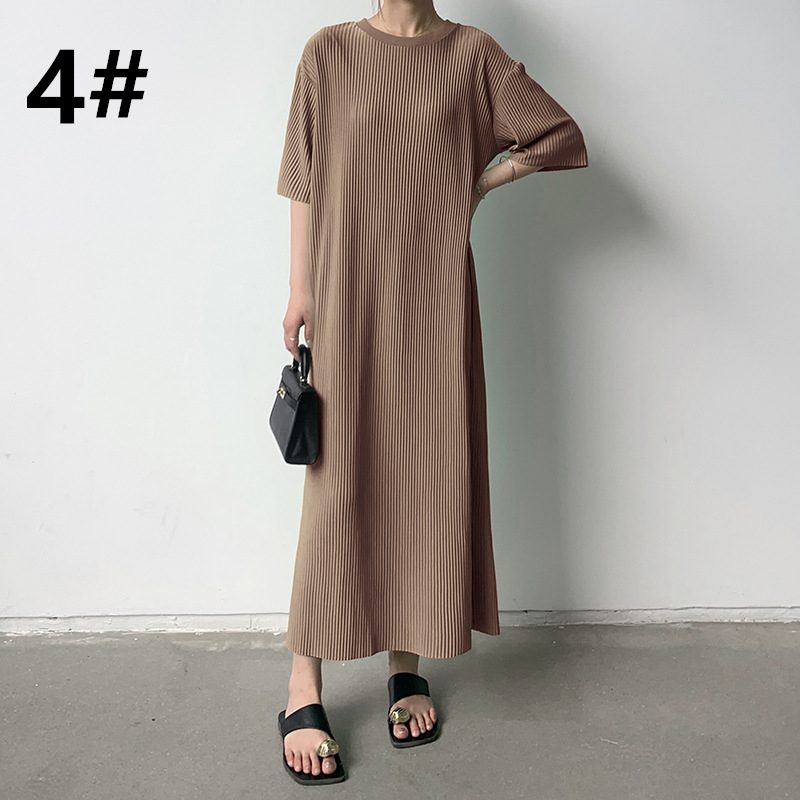 春夏にぴったりな軽やかなニット素材のロングワンピースは今季注目の一着です。