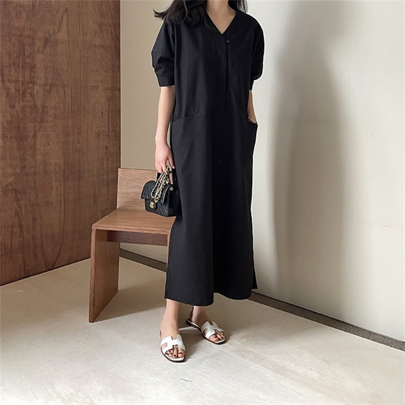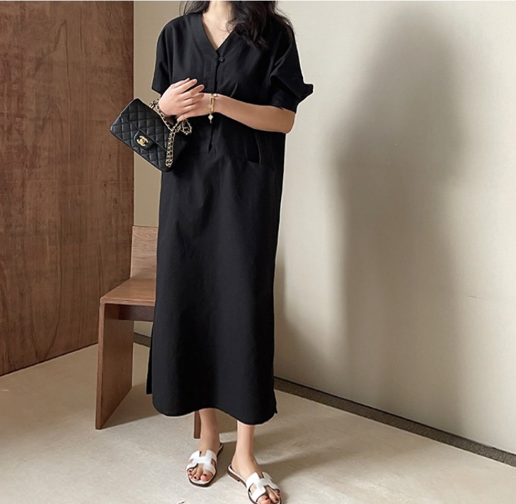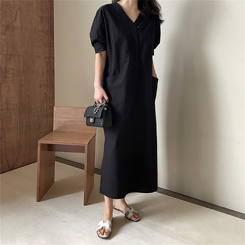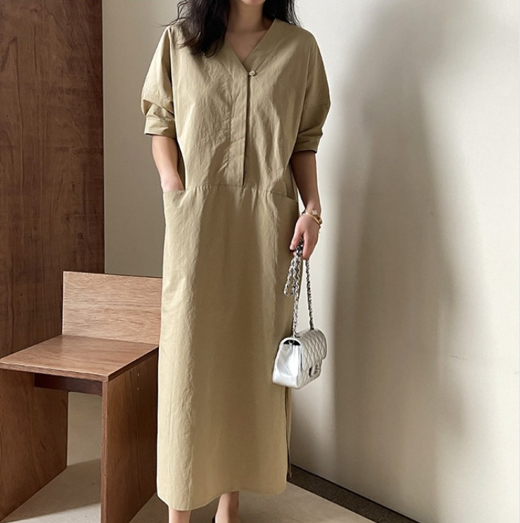 ロングワンピースならではの上品なシルエットで体型カバーも叶います。