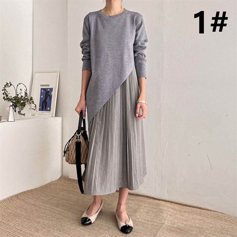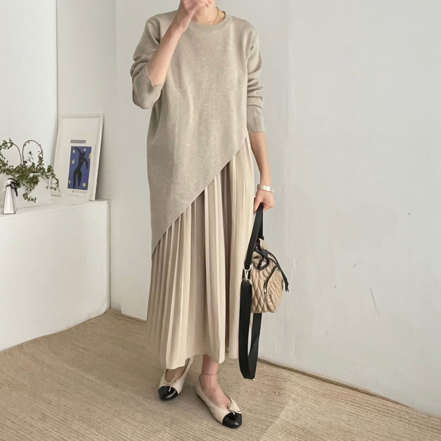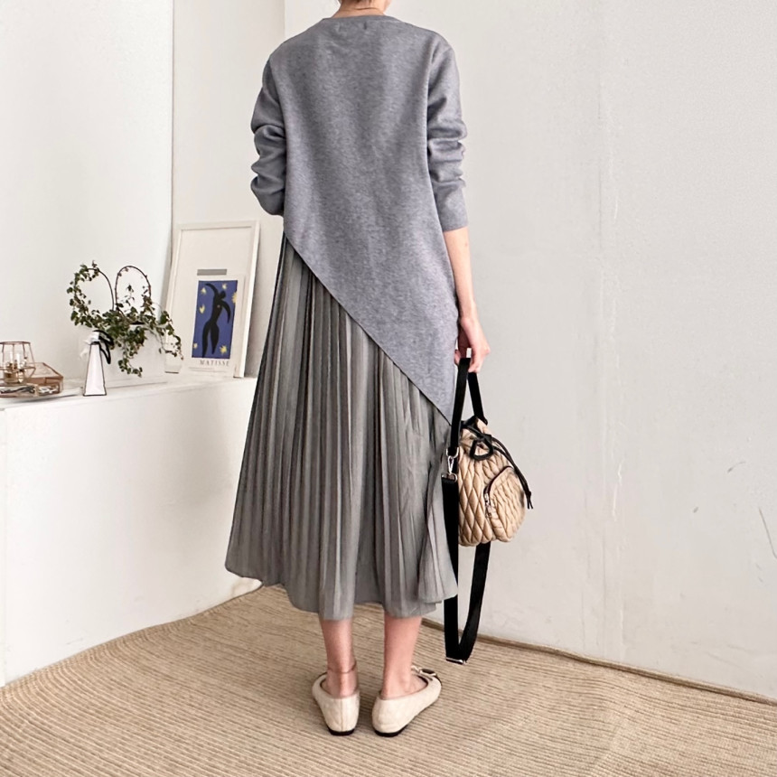 プリーツスカートが美しく揺れる上品なシルエットで体型カバーも抜群。