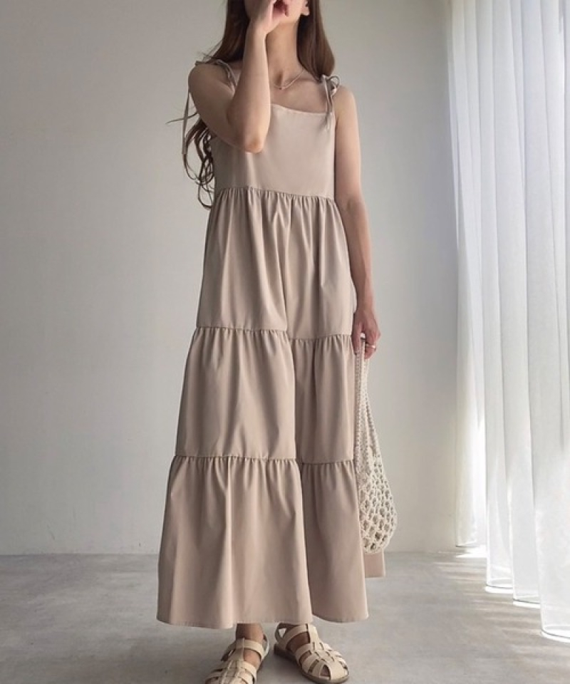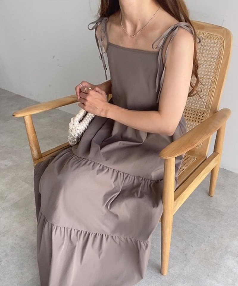 春夏にぴったりな素材のキャミロングワンピースは今季注目の一着。