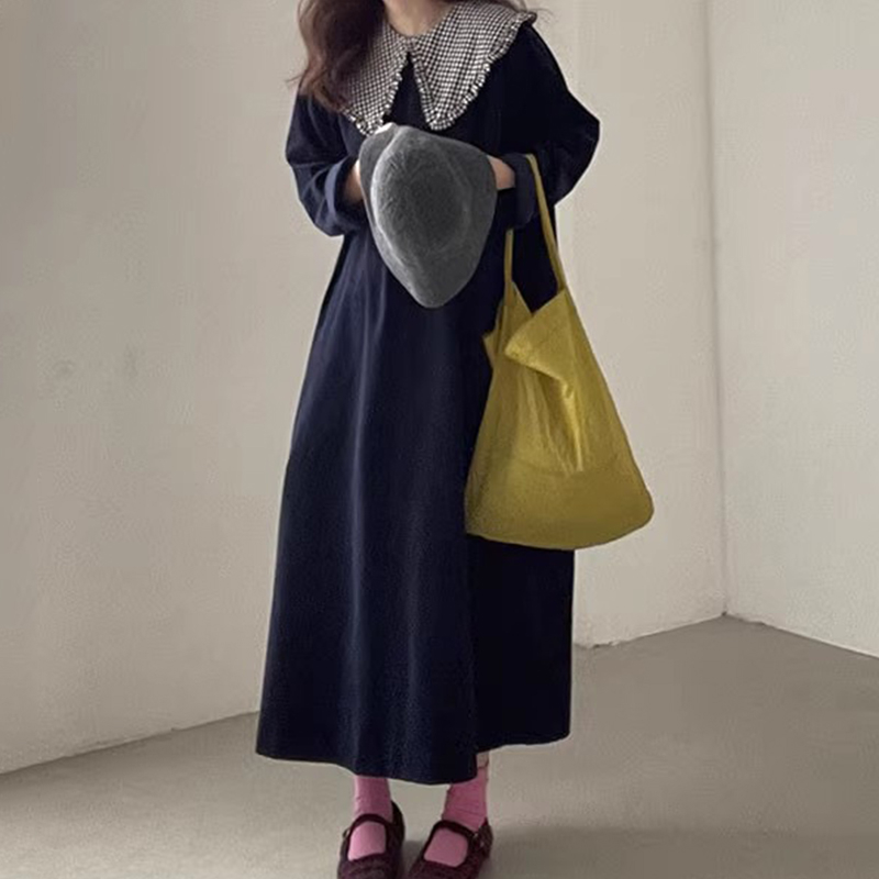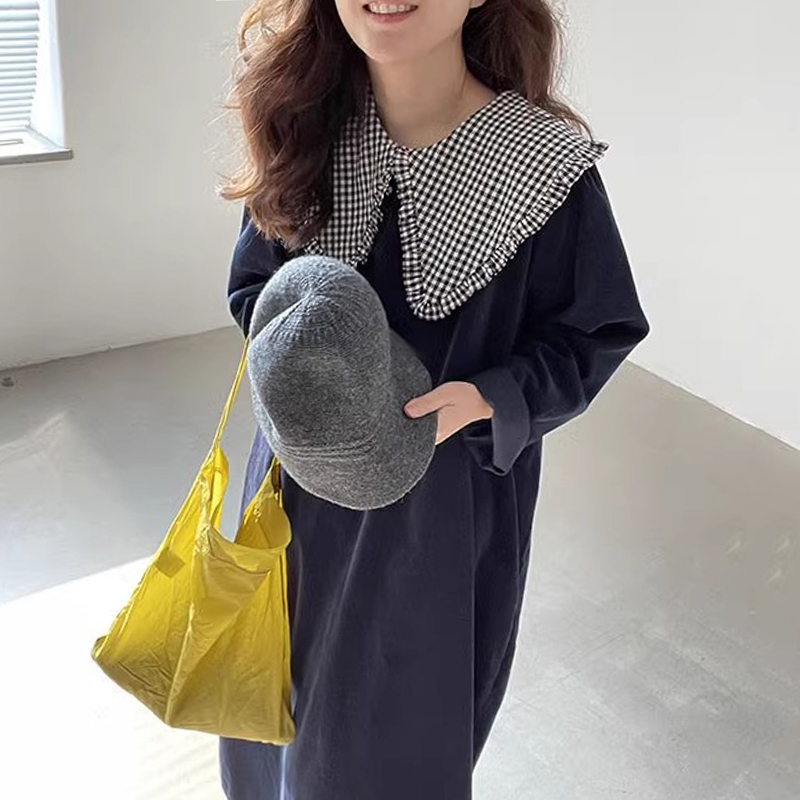 ギンガムチェック襟がアクセントの上品なデザイン。