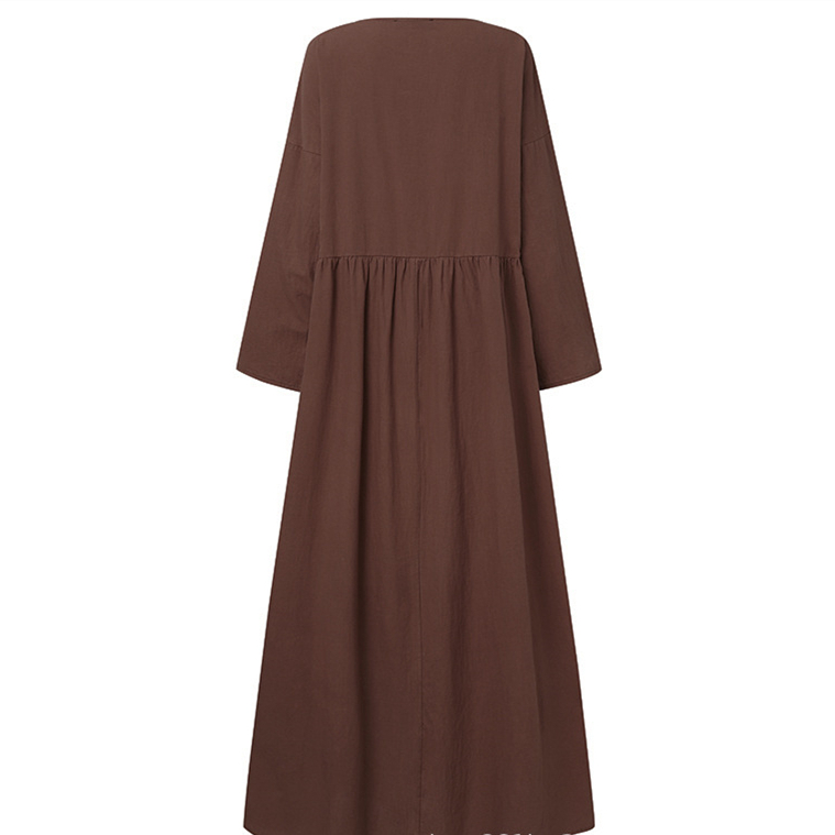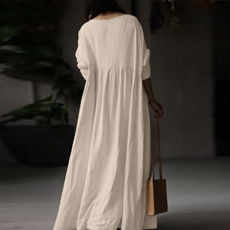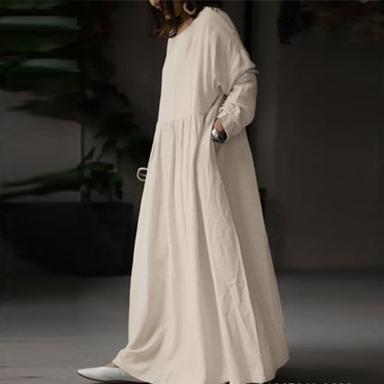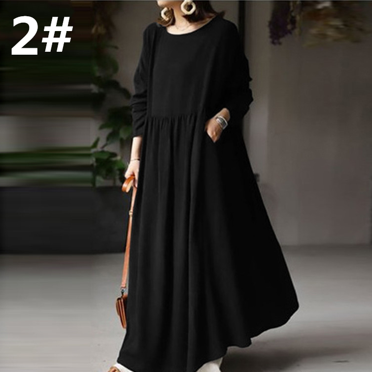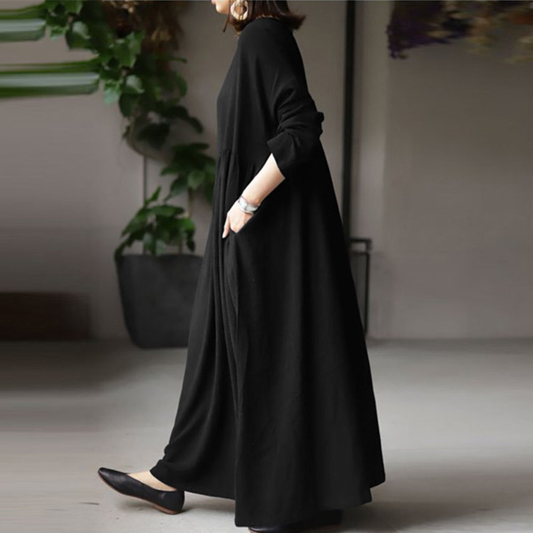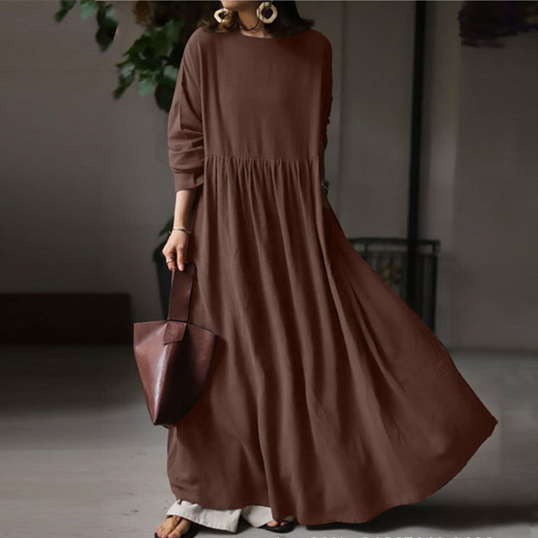 秋にピッタリな上質素材を使用したフレアロングワンピースは今季注目の一着。