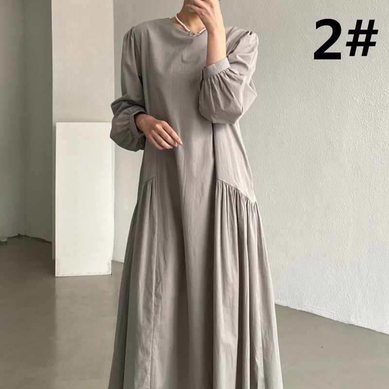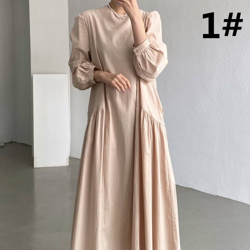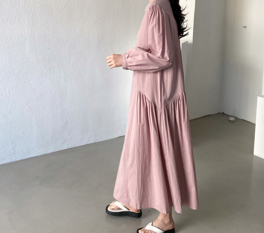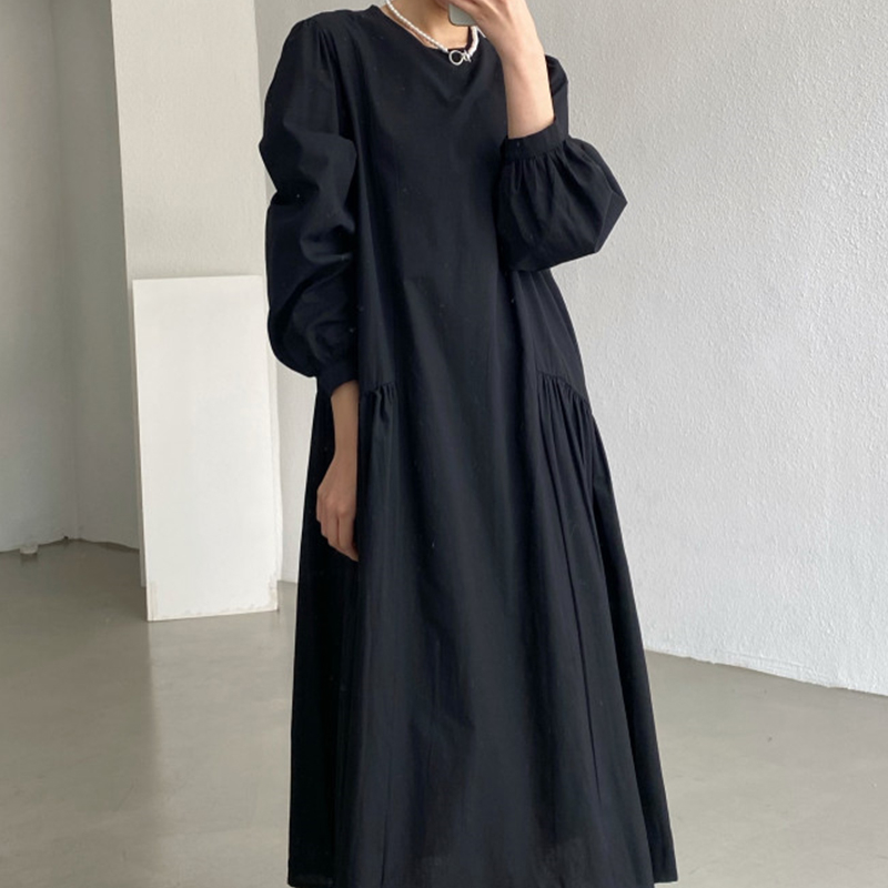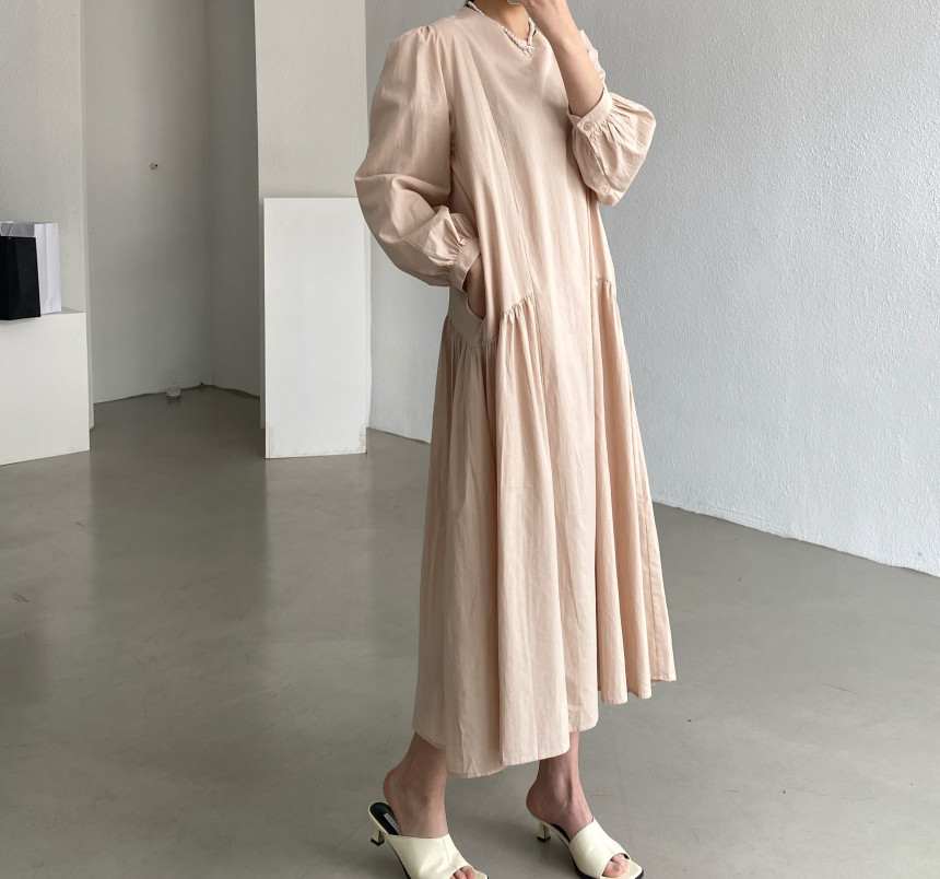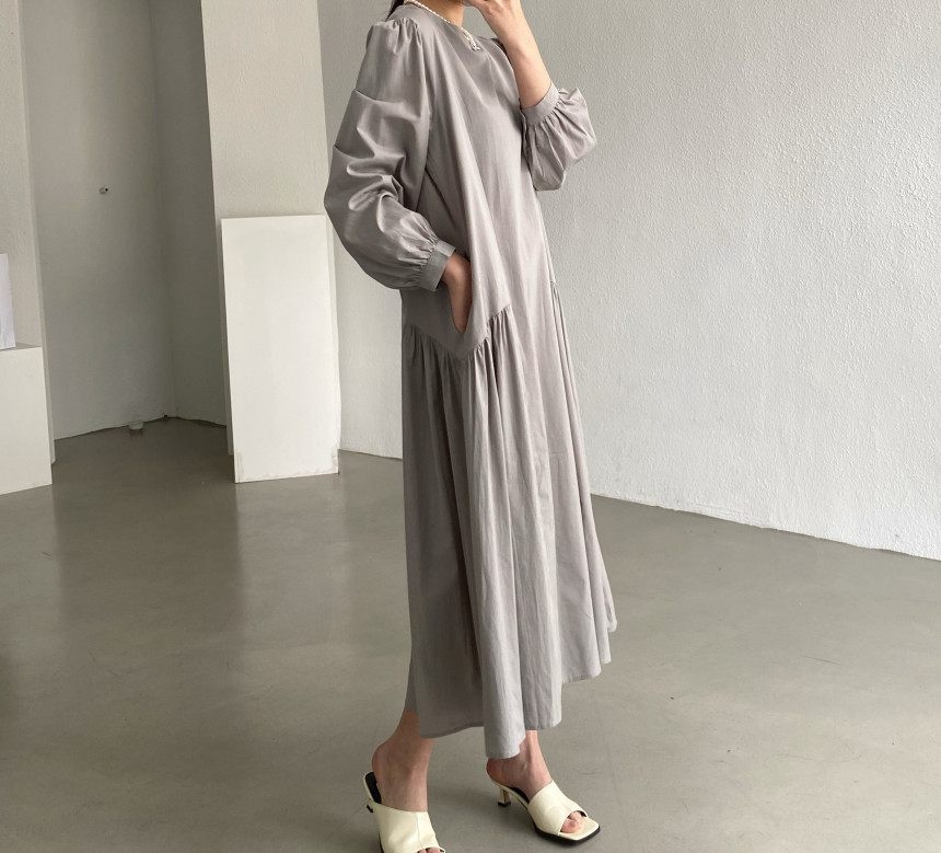 秋にぴったりな素材を使用したフレアロングワンピースは今季注目の一着です。