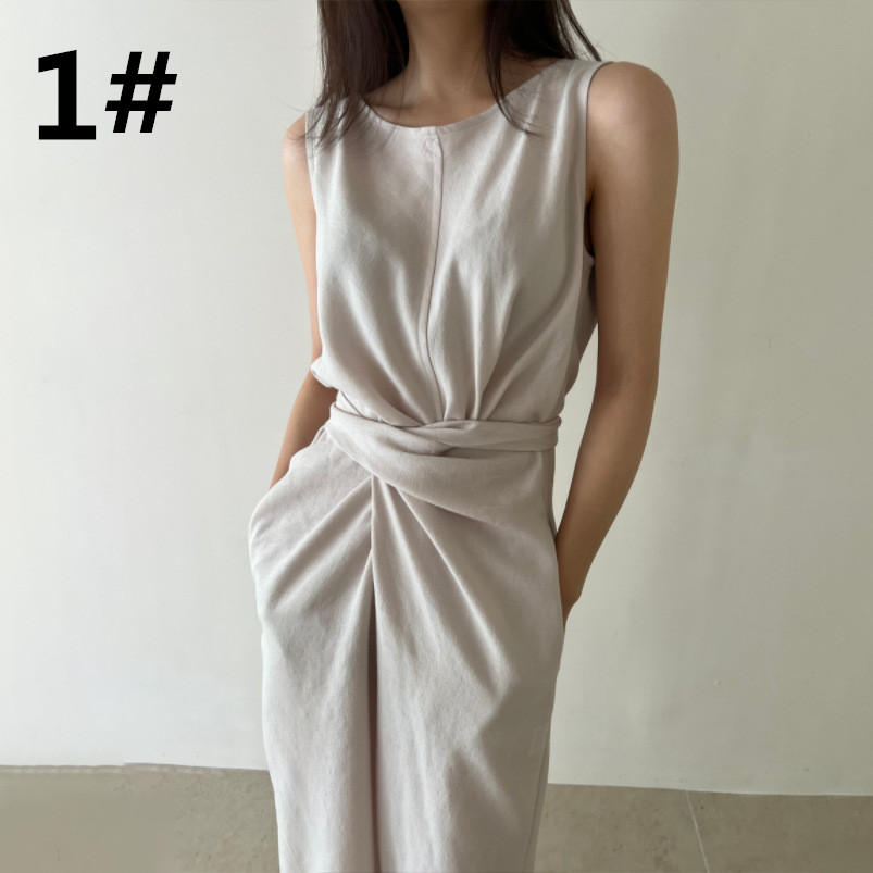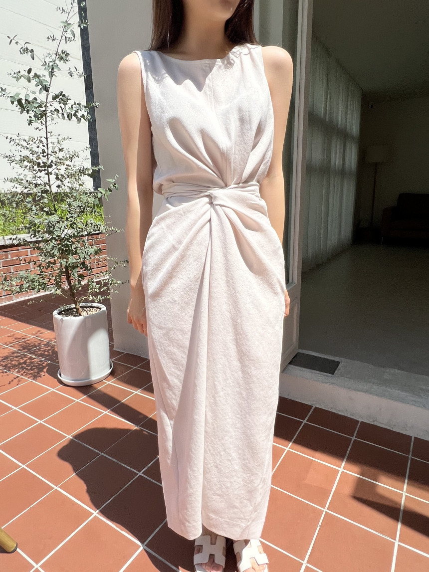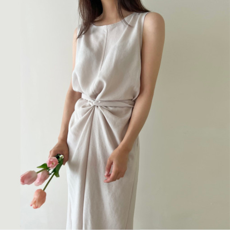 ウエストのリボンデザインがアクセントになった韓国風スタイル。