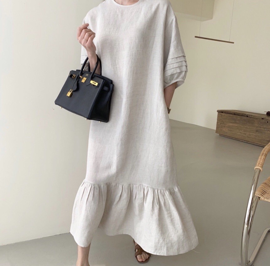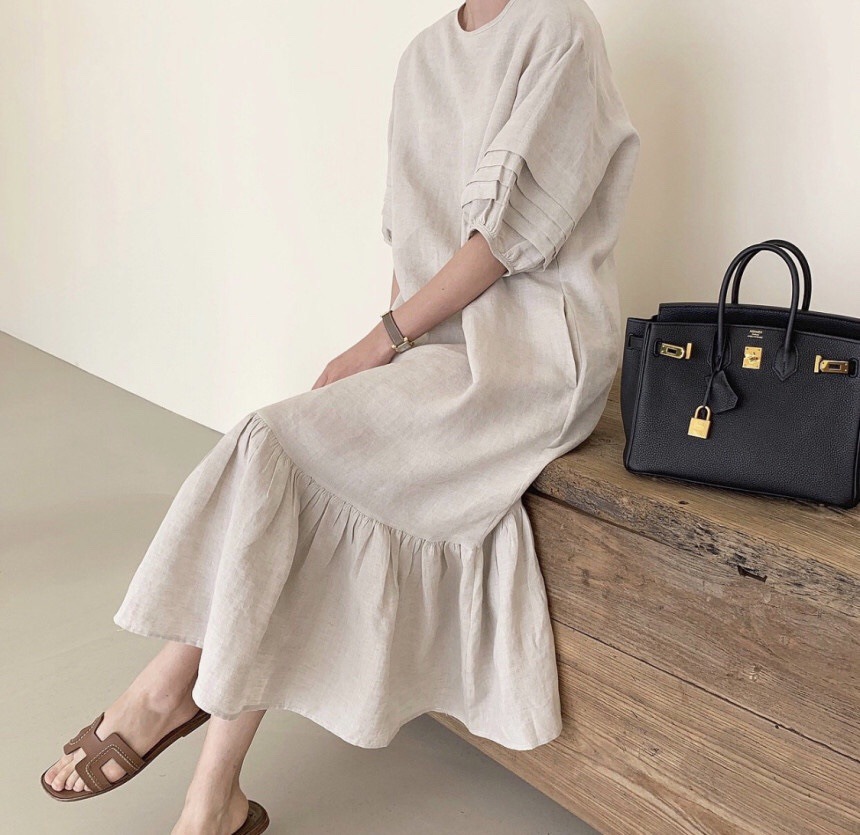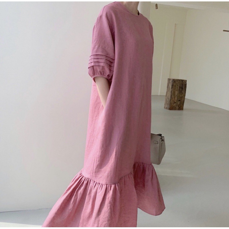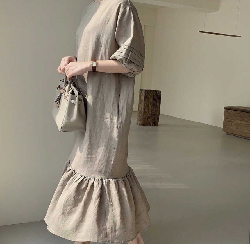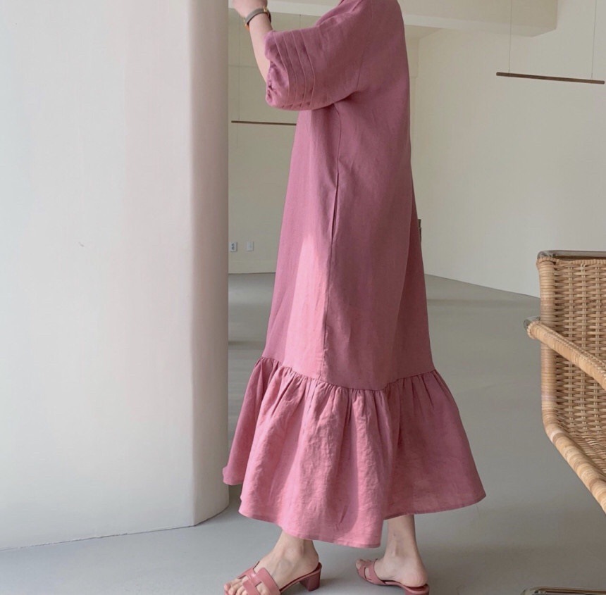裾のフリルが女性らしさをプラスして、一枚でおしゃれに決まります。