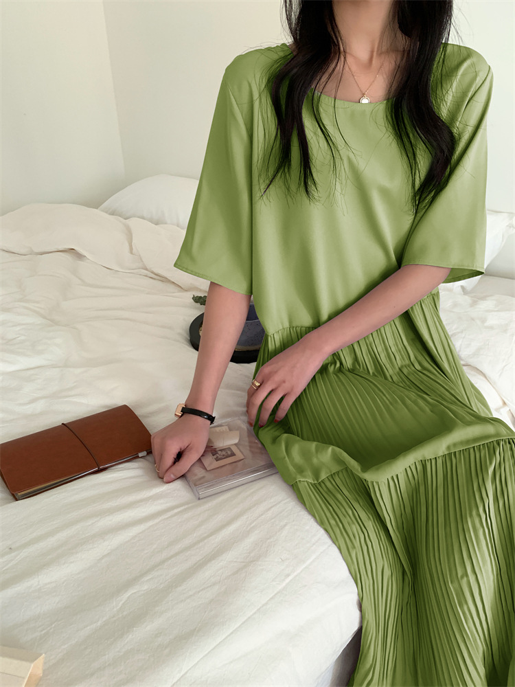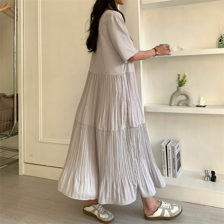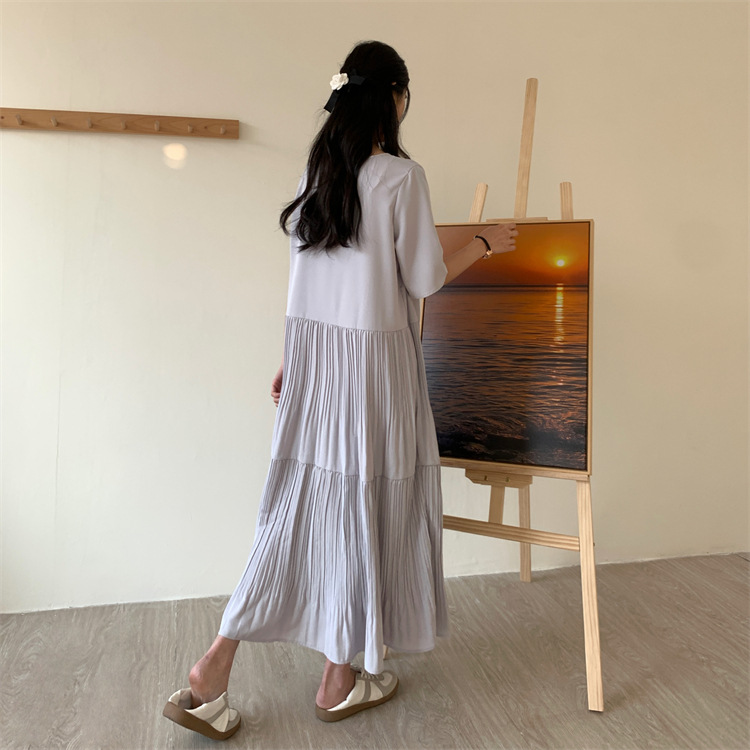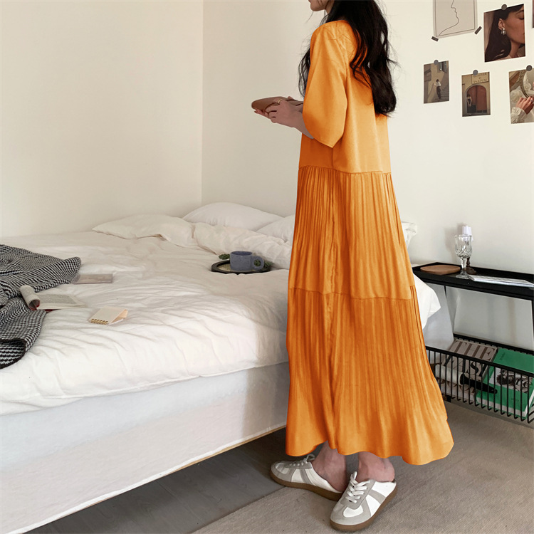 ゆったりとしたロングワンピースデザインで、気になる体型もしっかりカバー。