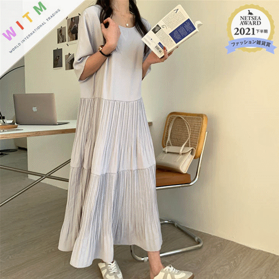 段々に重なるティアードフレアが女性らしく、一枚で上品な印象に仕上がります。