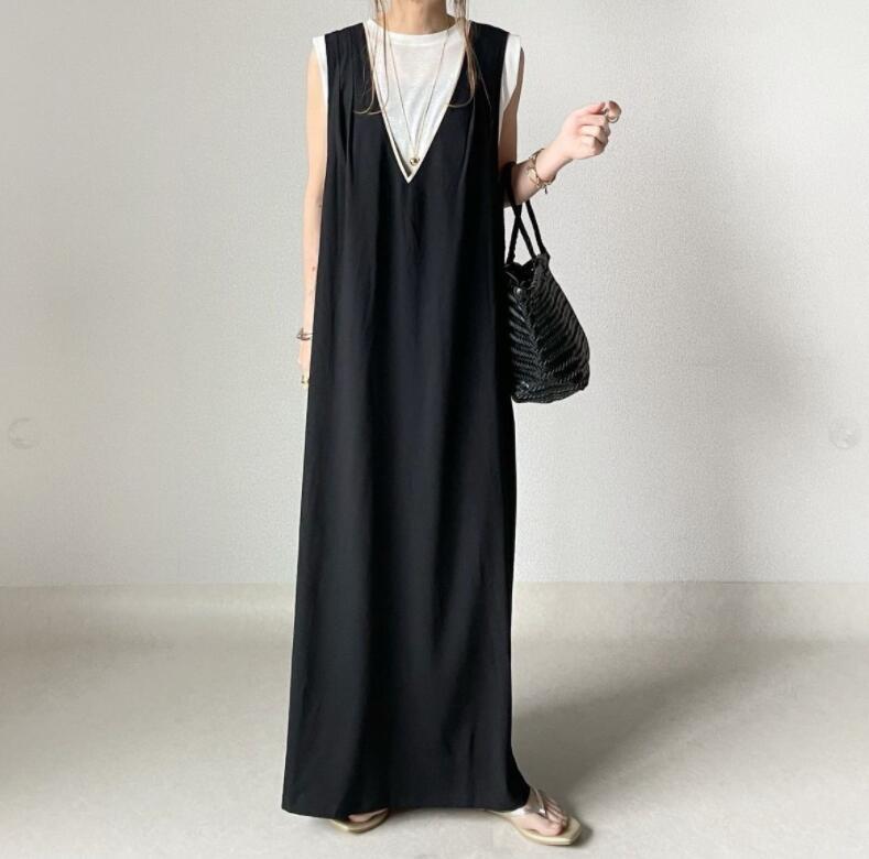 足首まで美しく流れるロングワンピースで、一枚でこなれた着こなしが完成します。