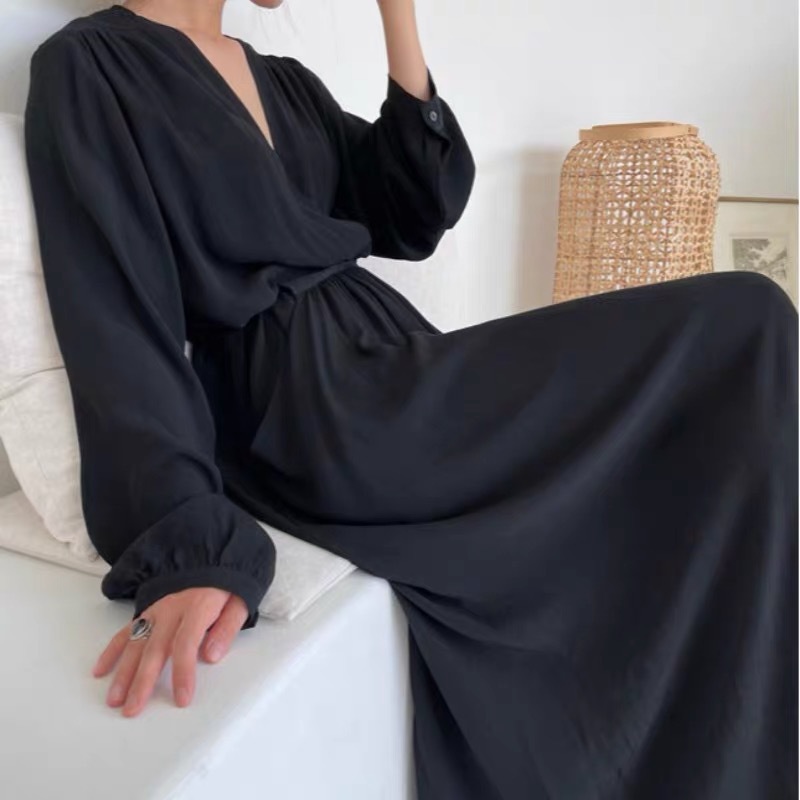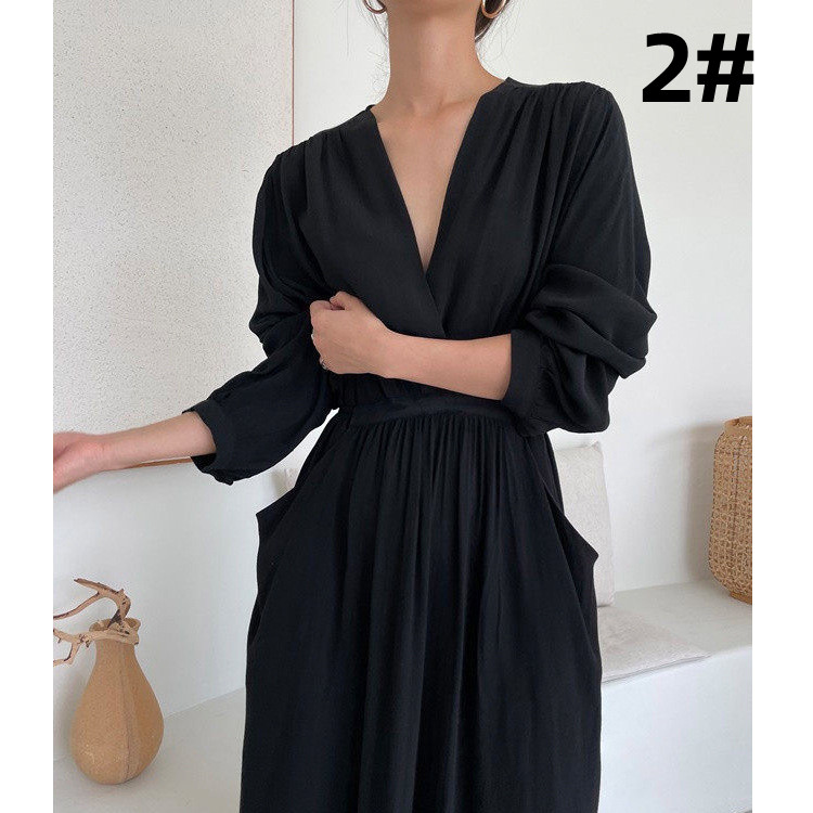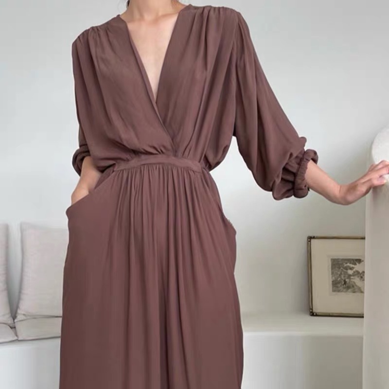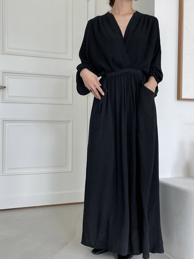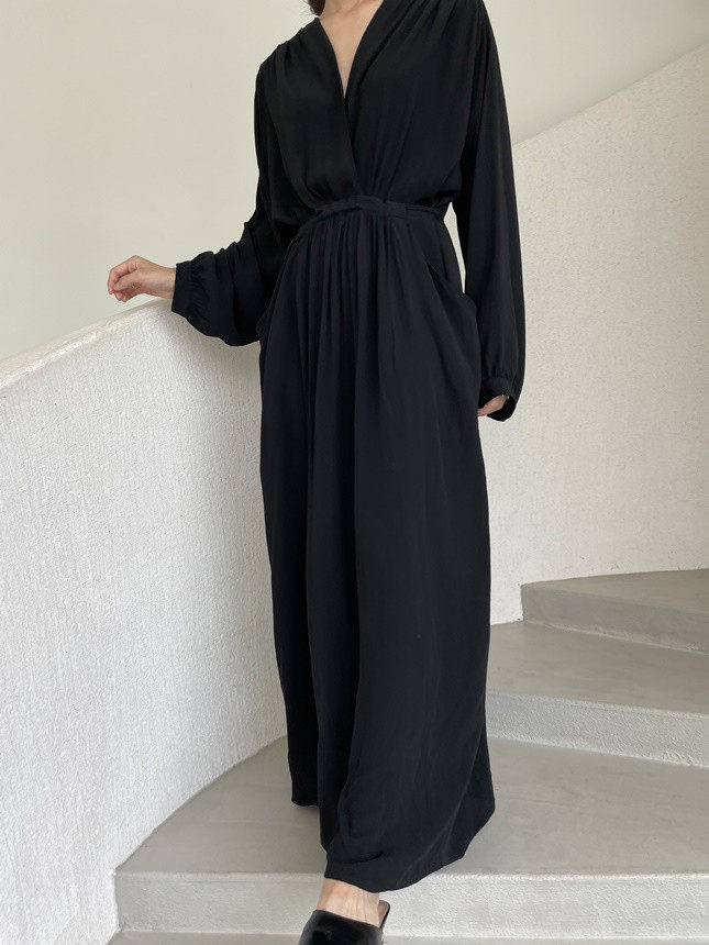 柔らかく薄手の生地を使用したロングワンピース。袖がロールアップできるので長い季節着回しできる一枚です。