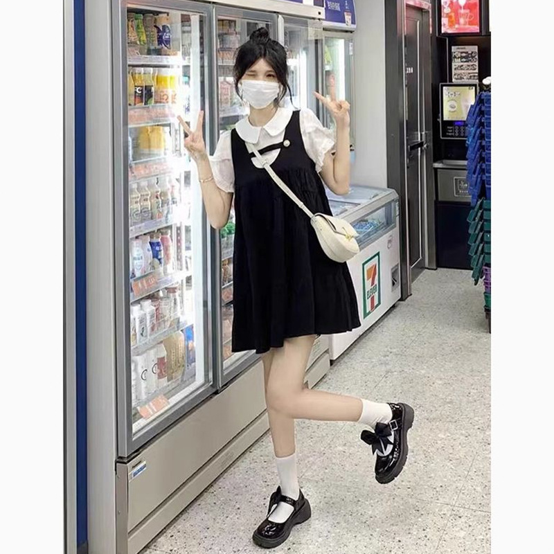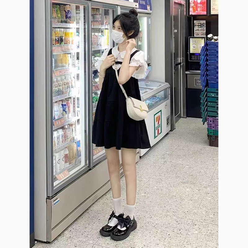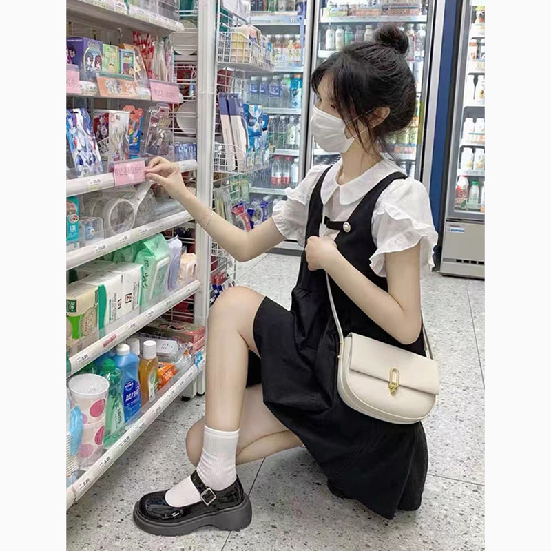 白いトップスとの重ね着で甘辛ミックススタイルが完成します。