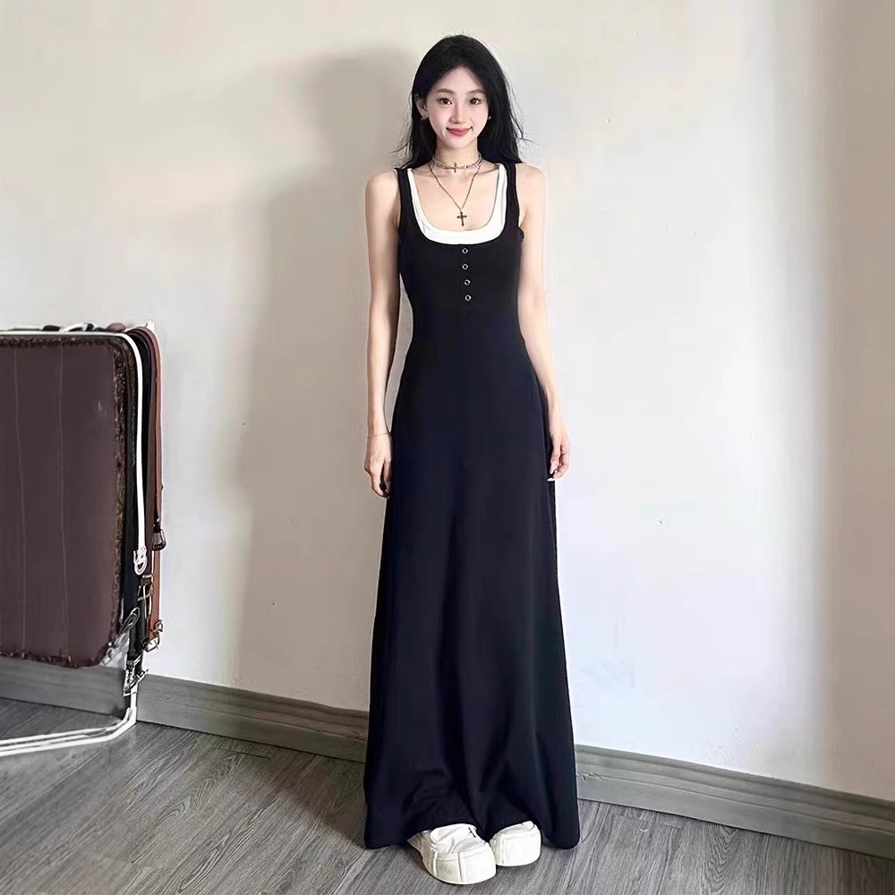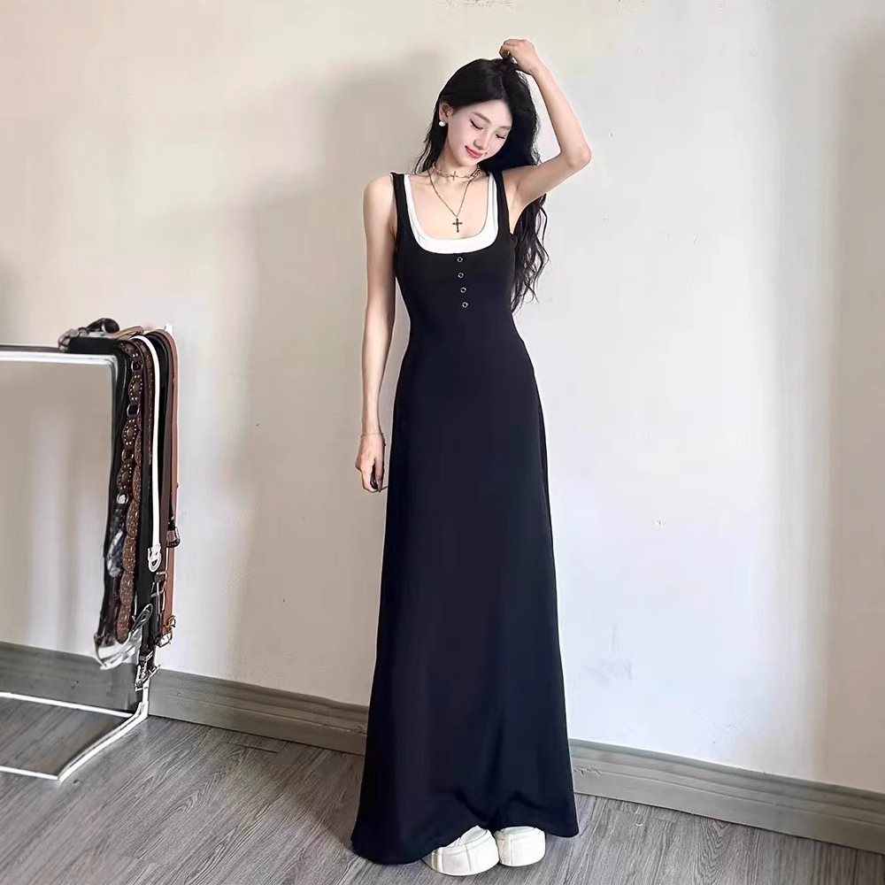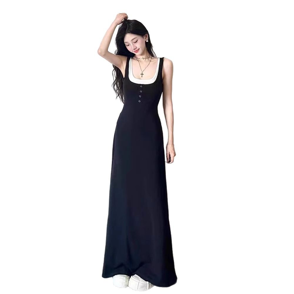 エレガントな黒色のノースリーブロングワンピースです。