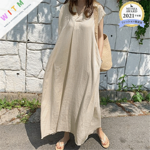大人の上品な着こなしが叶うノースリーブのロングワンピース。