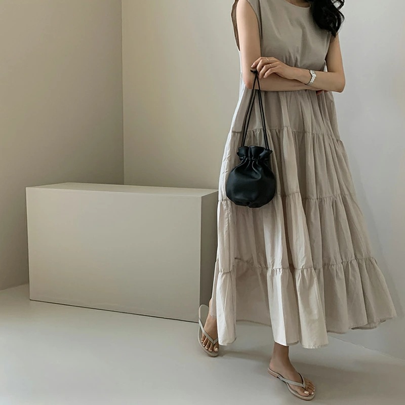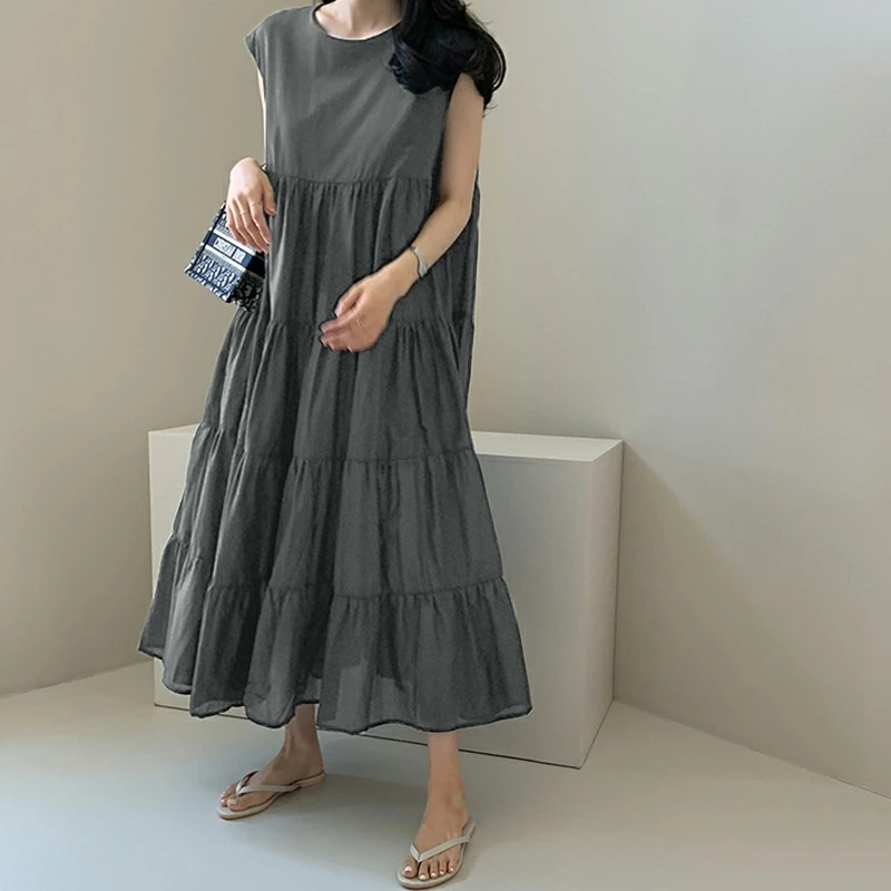 大人カジュアルに着こなせるティアードデザインのロングワンピース。