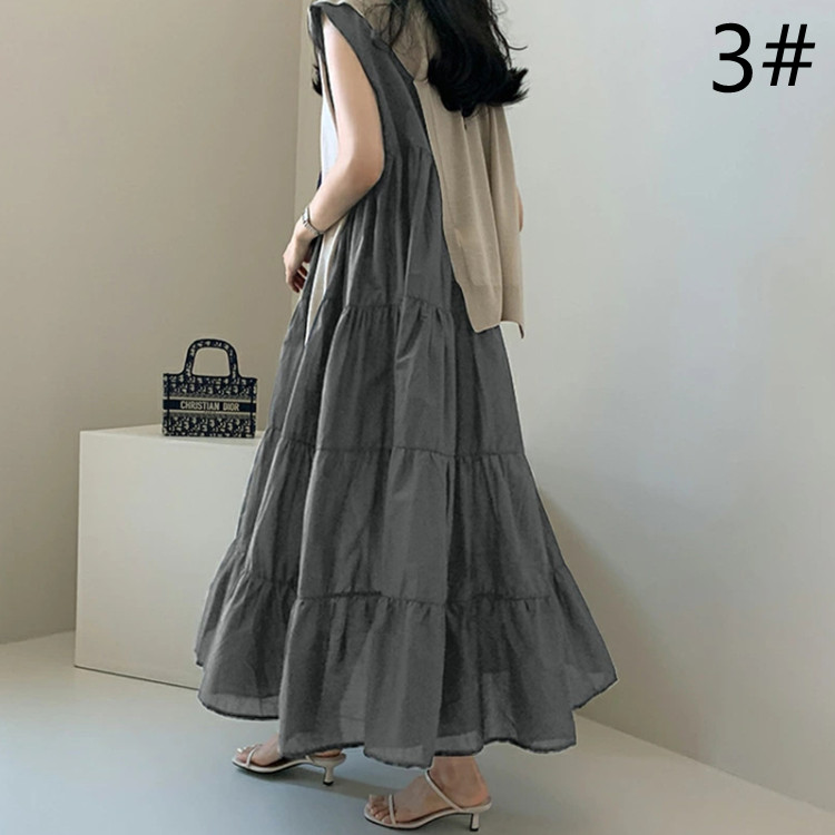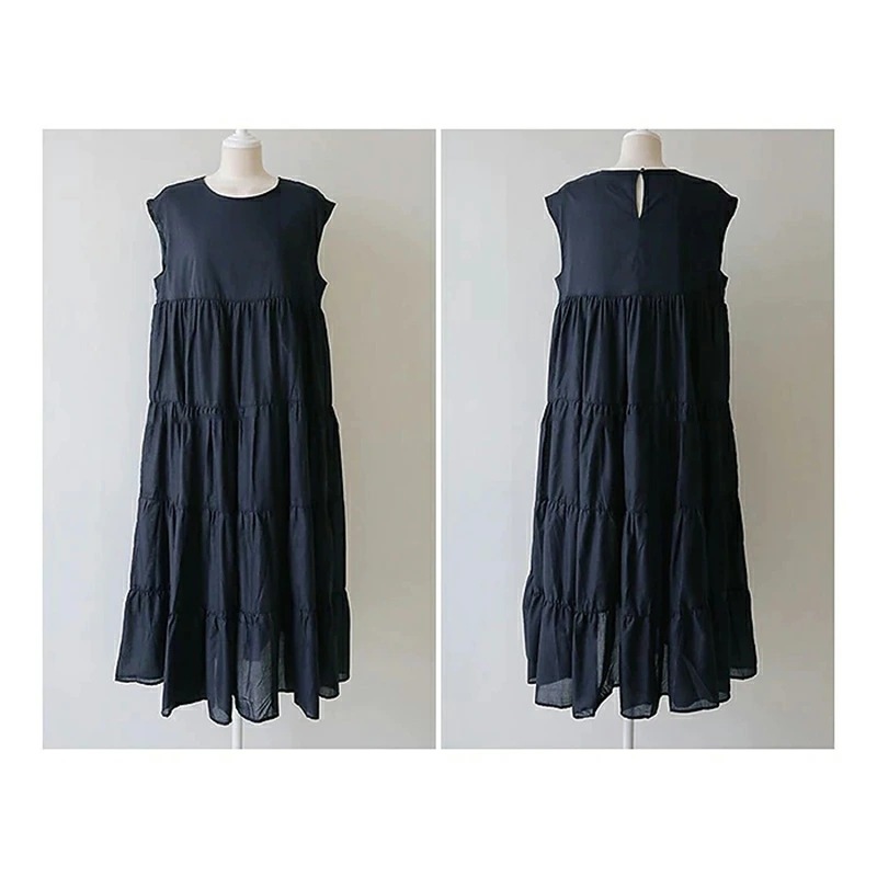 ノースリーブでさらりと着られ、ゆったりとしたシルエットで気になる体型も自然にカバー。