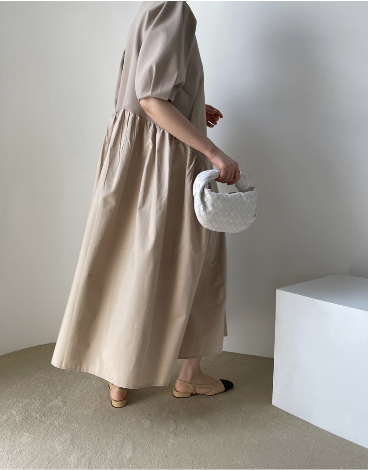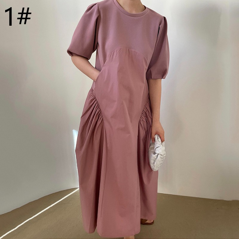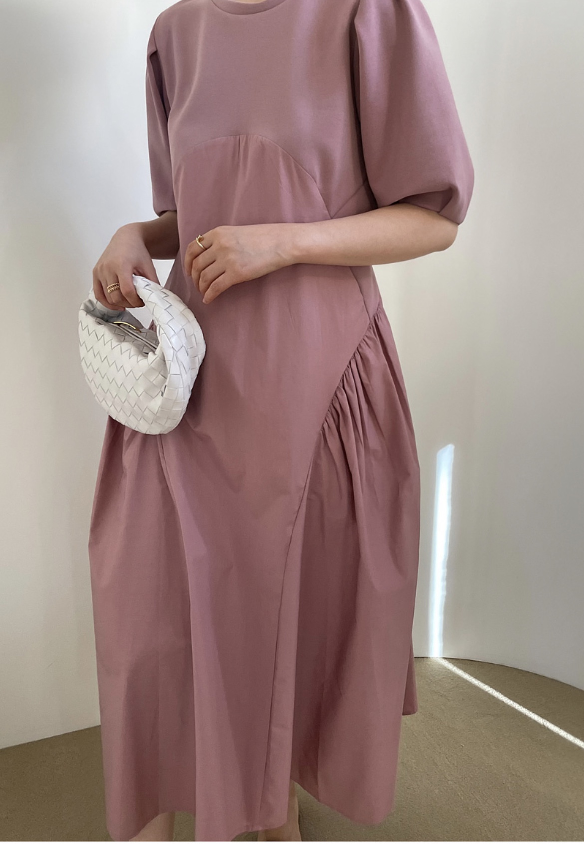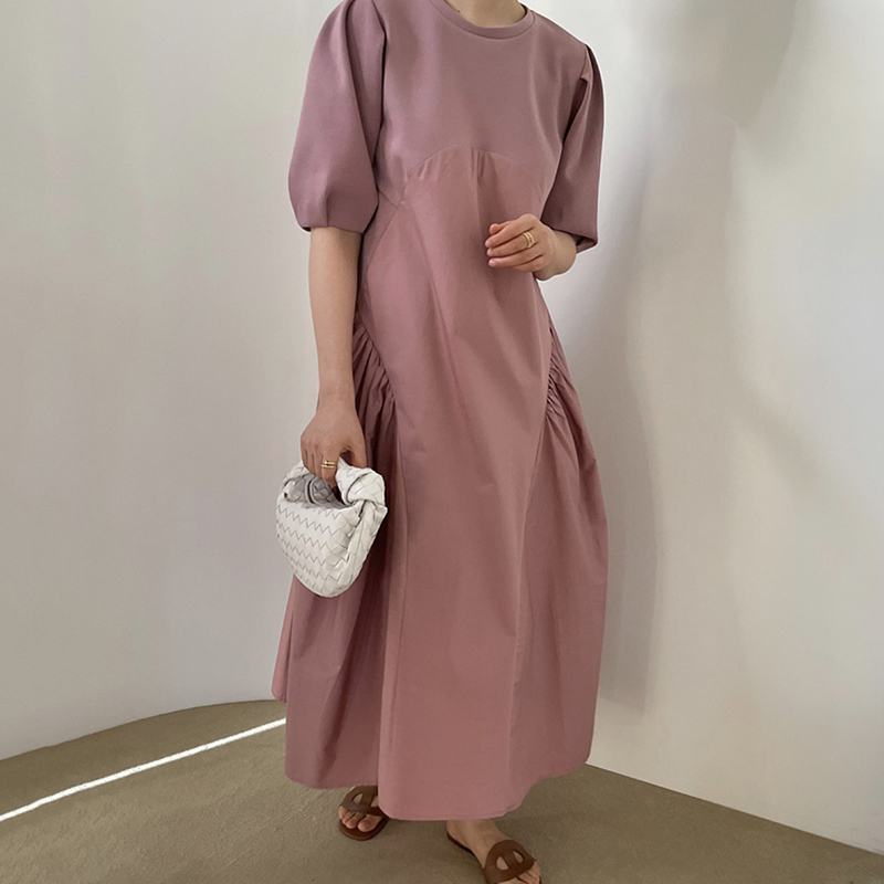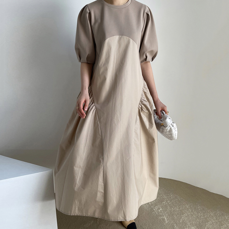 ゆったりとしたパフスリーブと切替デザインで、気になる体型も自然にカバー。