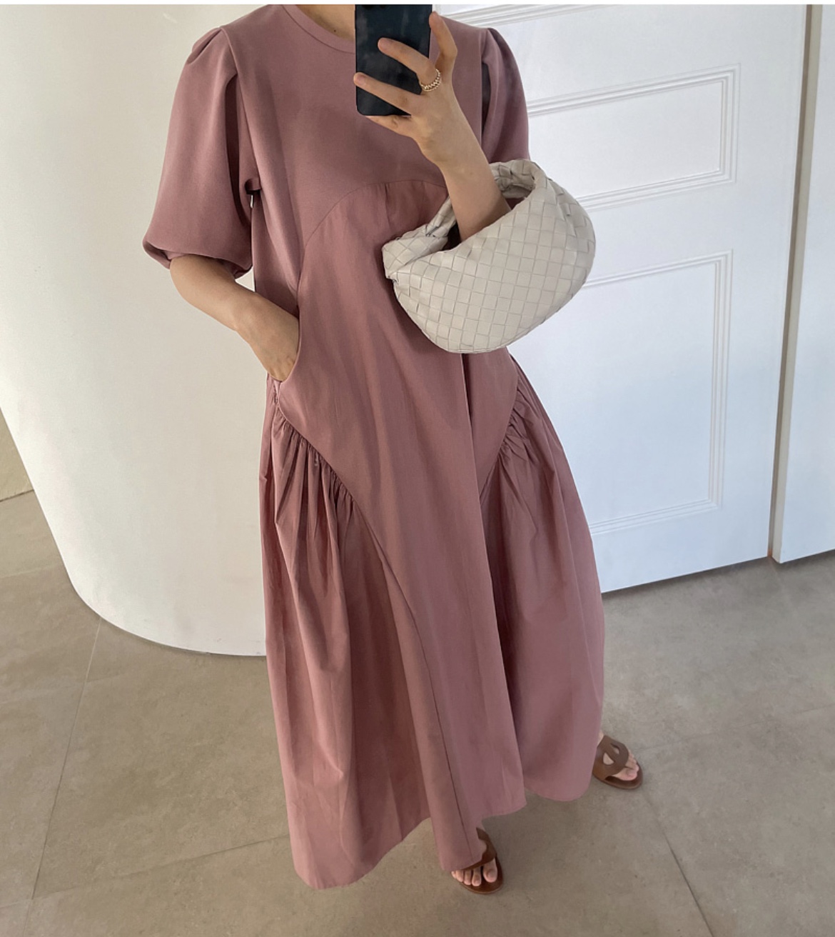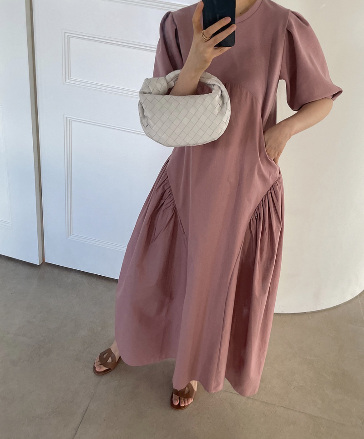 大人カジュアルに着こなせるマキシ丈のロングワンピース。