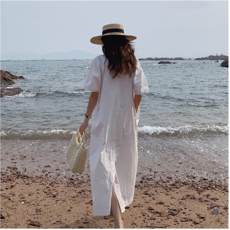 大人カジュアルに着こなせるマキシ丈のロングワンピース。