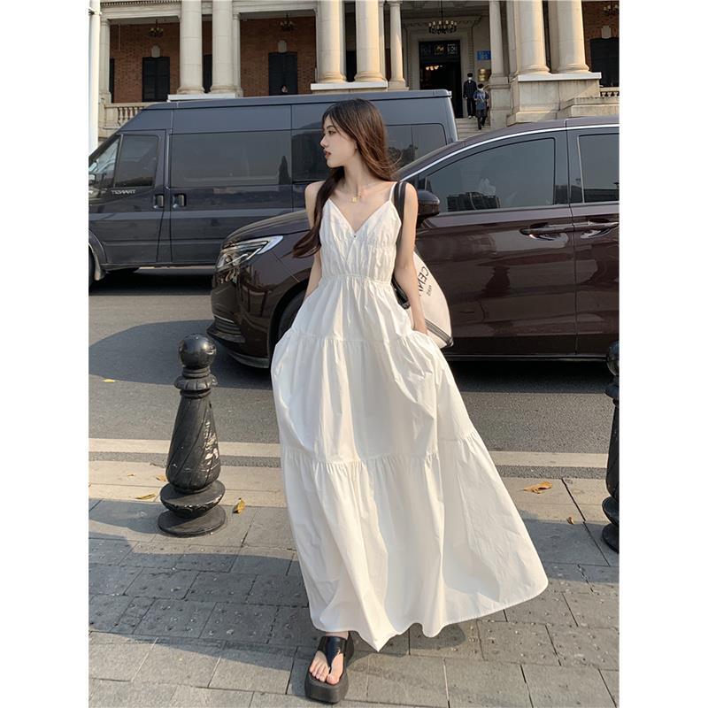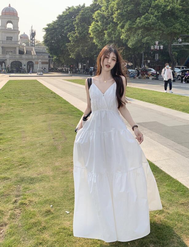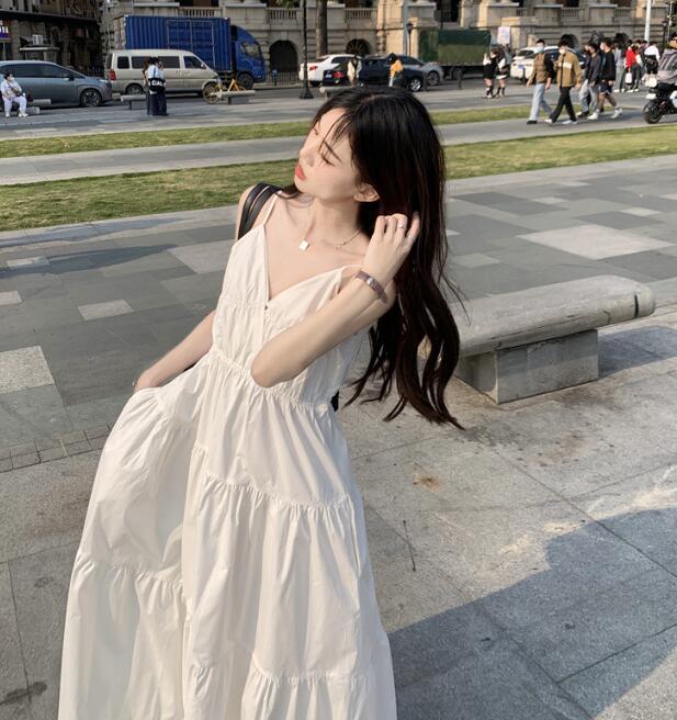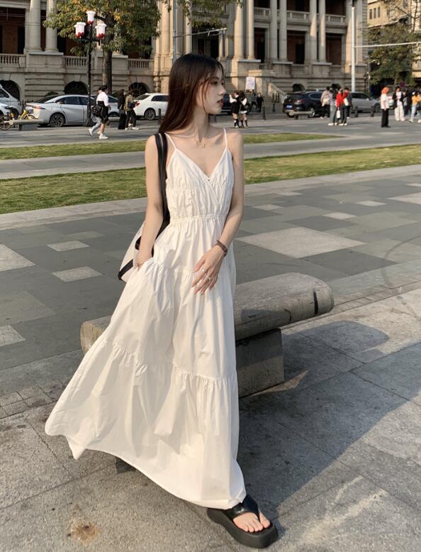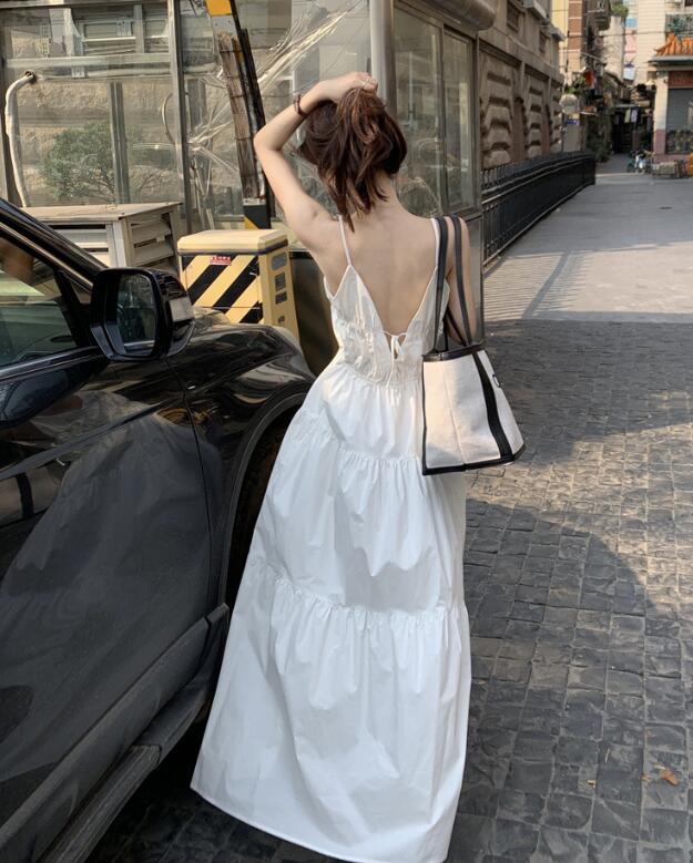 爽やかな白色が魅力的なキャミタイプのロングワンピースです。