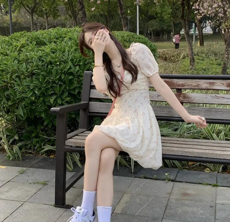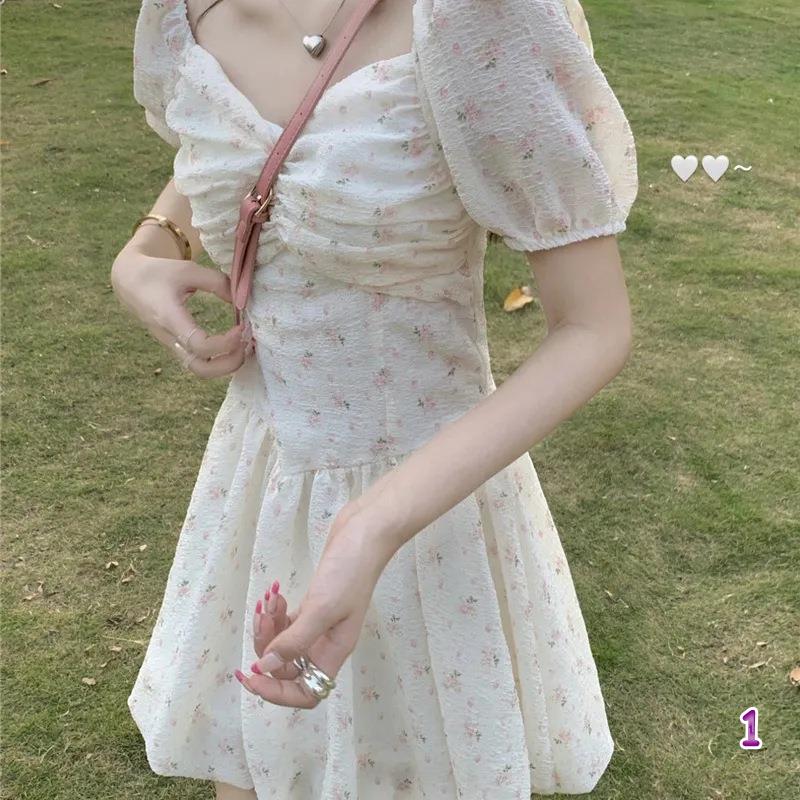 涼しげな花柄が印象的なフレアワンピースです。